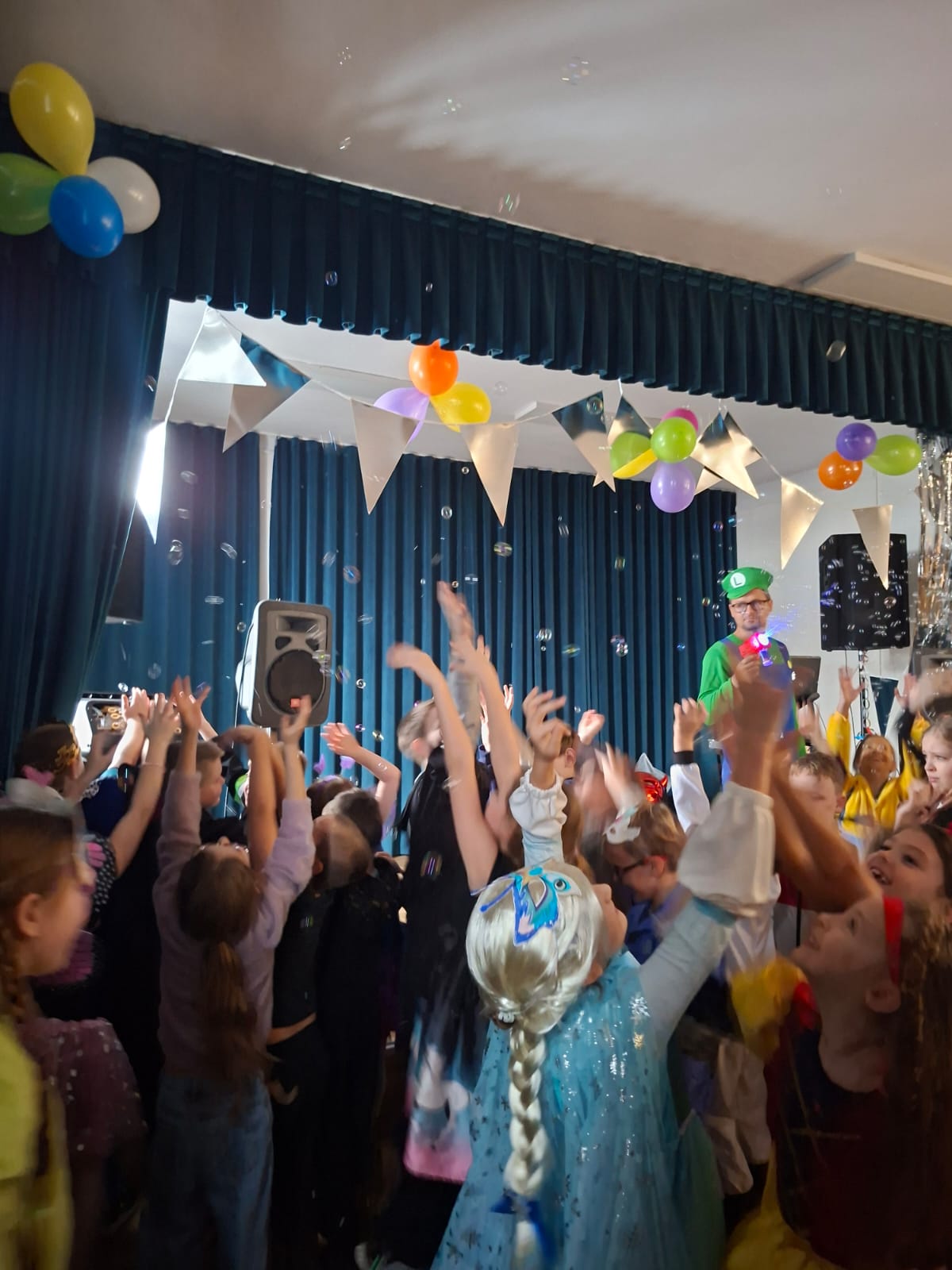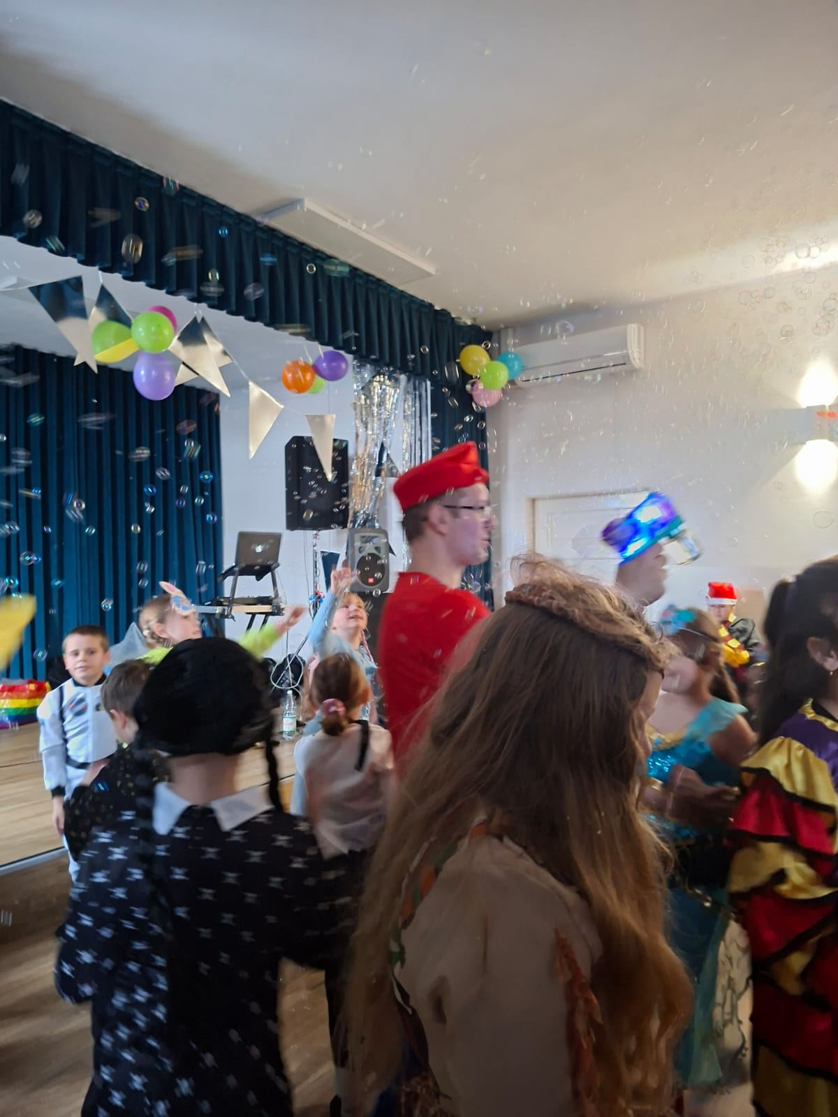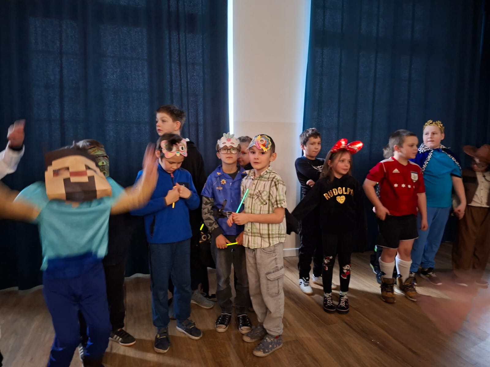 Uczniowie klas młodszych tanecznym krokiem powitali rok 2026 podczas balu, który odbył się 12 stycznia w auli naszej szkoły. Tego dnia sala wypełniła się muzyką, śmiechem i feerią barw dzięki pomysłowym oraz kolorowym kostiumom uczestników. Nie zabrakło tańców, wesołych zabaw i emocjonujących konkursów, które dostarczyły dzieciom wielu niezapomnianych wrażeń.