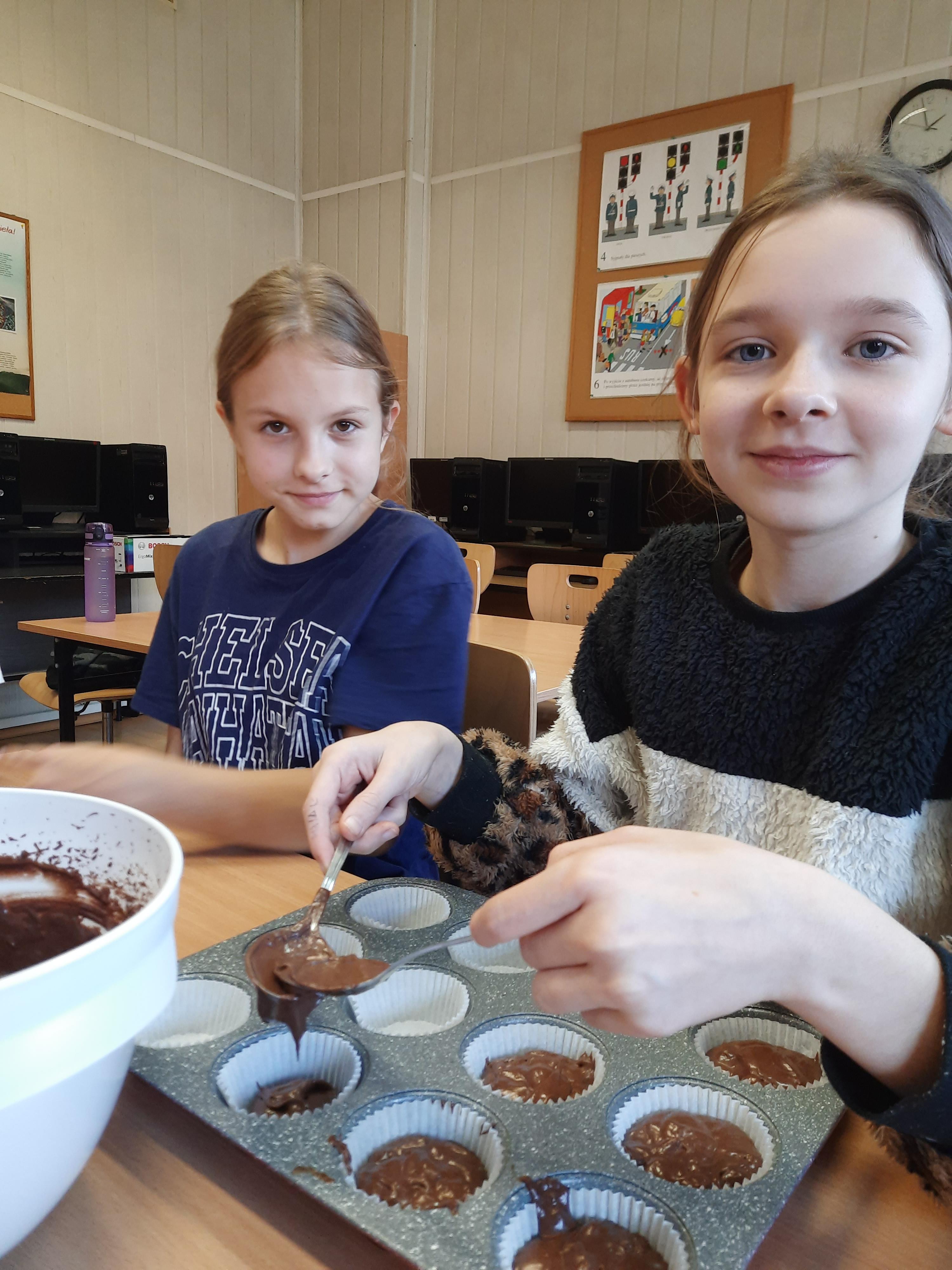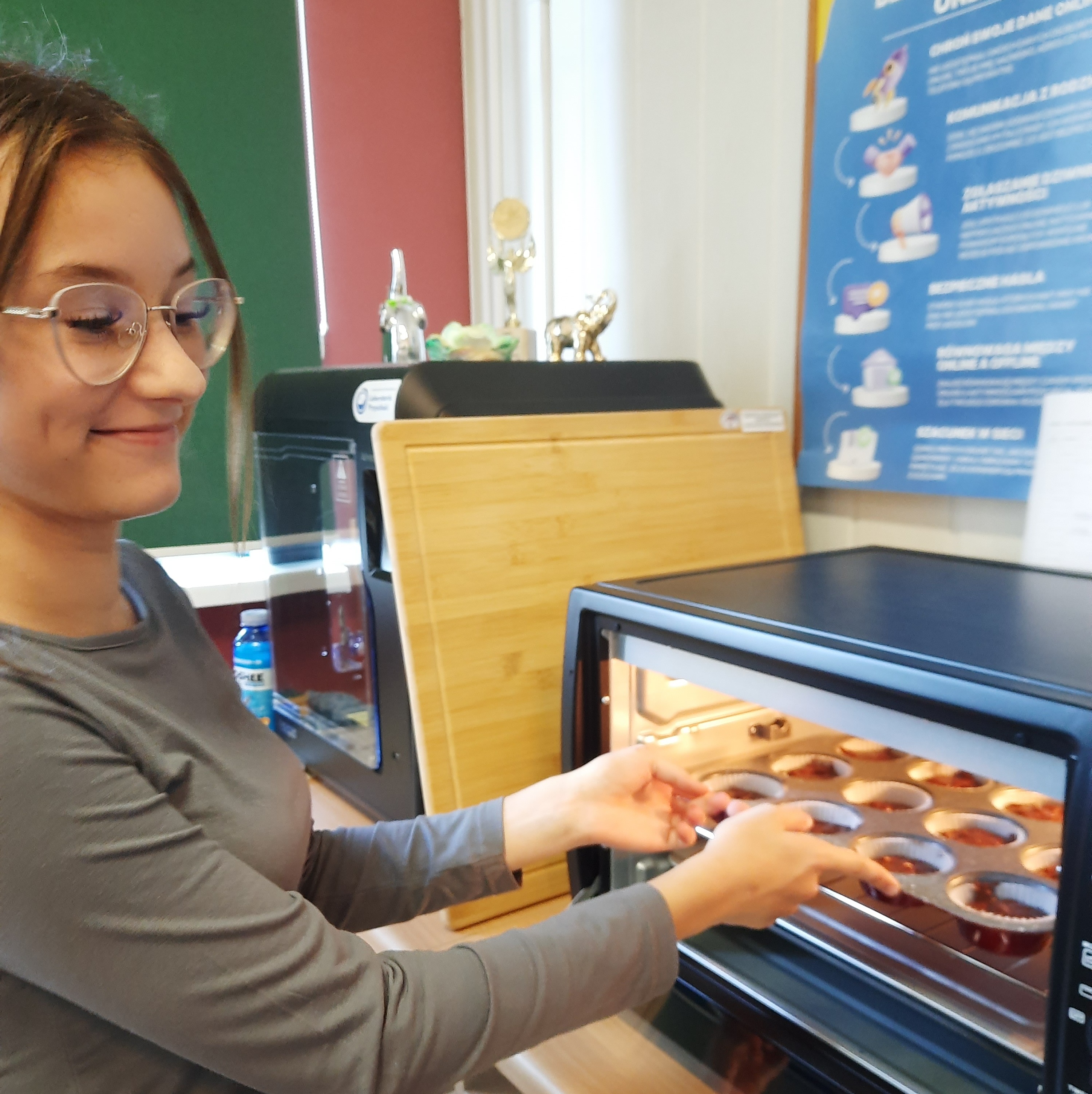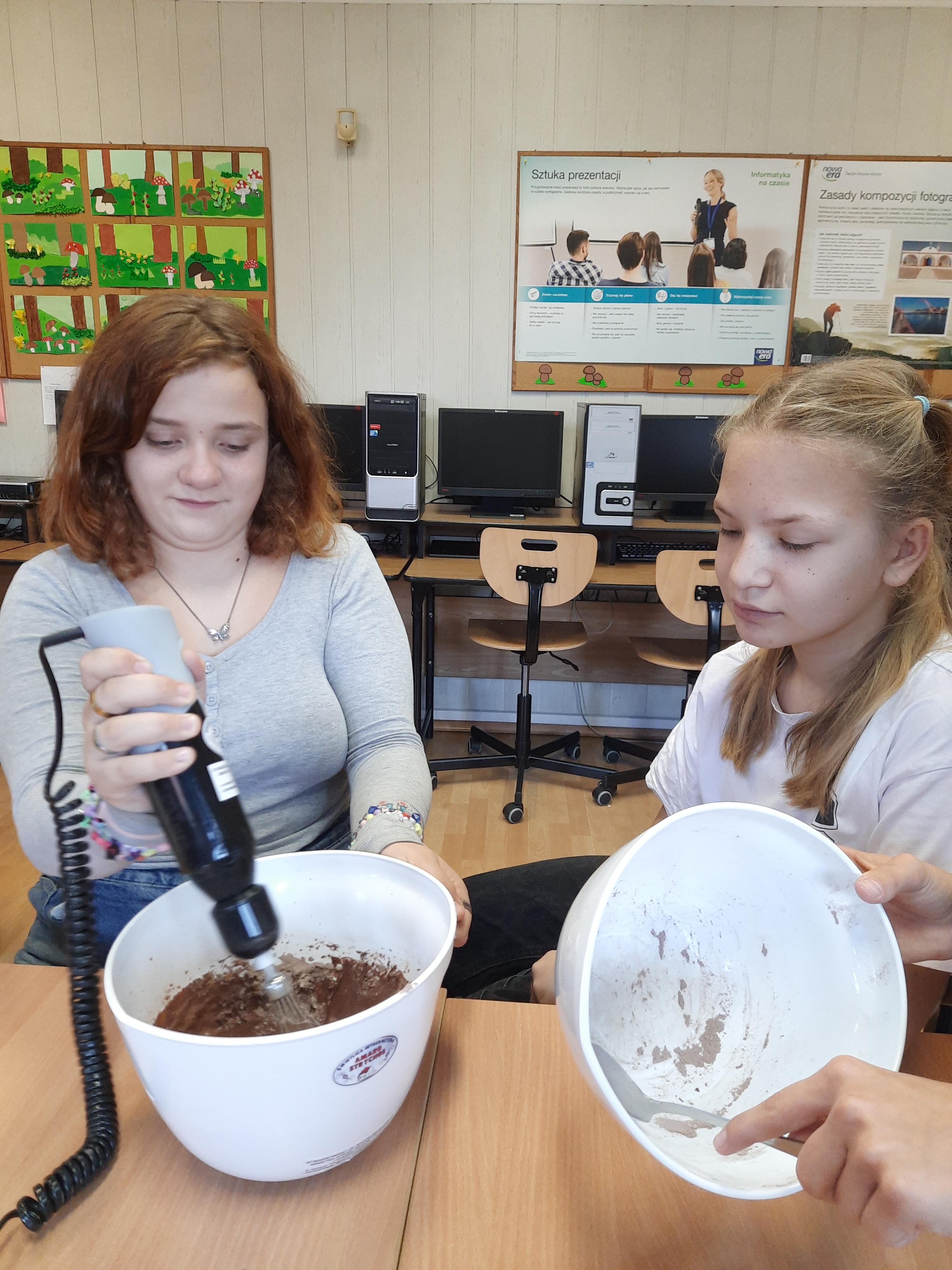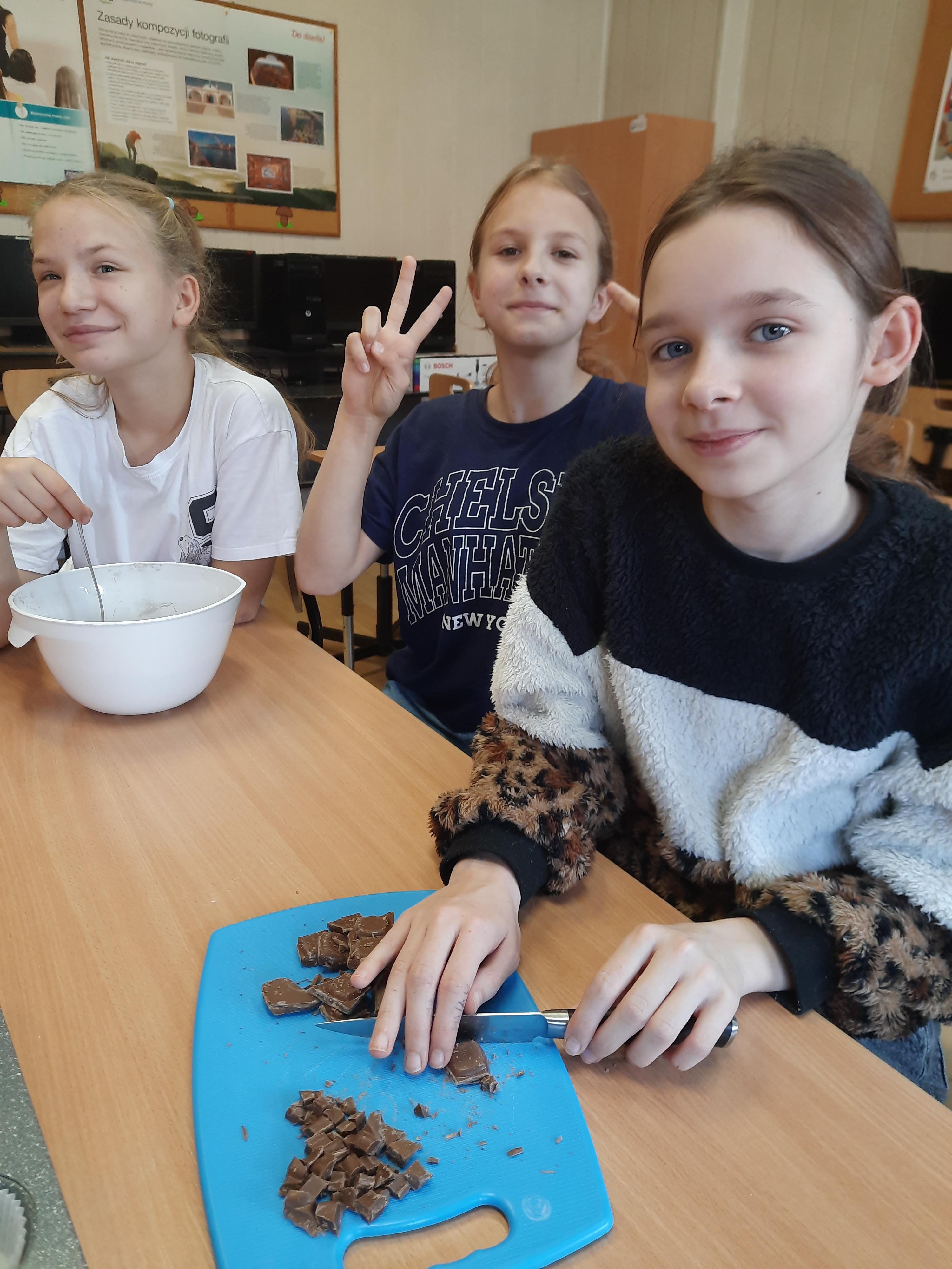„Kreatywne zajęcia techniczne i kulinaria” rozwijają zdolności kreatywne, techniczne oraz kulinarne. Uczniowie z klasy 5b uczestniczący w zajęciach rozpoczęli kulinarną przygodę z czekoladowymi babeczkami. Nie były to jednak zwykłe słodkości – dzięki przemyślanym składnikom i wspólnej pracy, powstały wypieki nie tylko pyszne, ale i pełne wartości odżywczych. Podczas przygotowywania ciasta uczniowie dowiedzieli się, jak ważne jest precyzyjne odmierzenie składników, zachowanie higieny oraz współpraca z innymi. Największą radością była oczywiście degustacja.