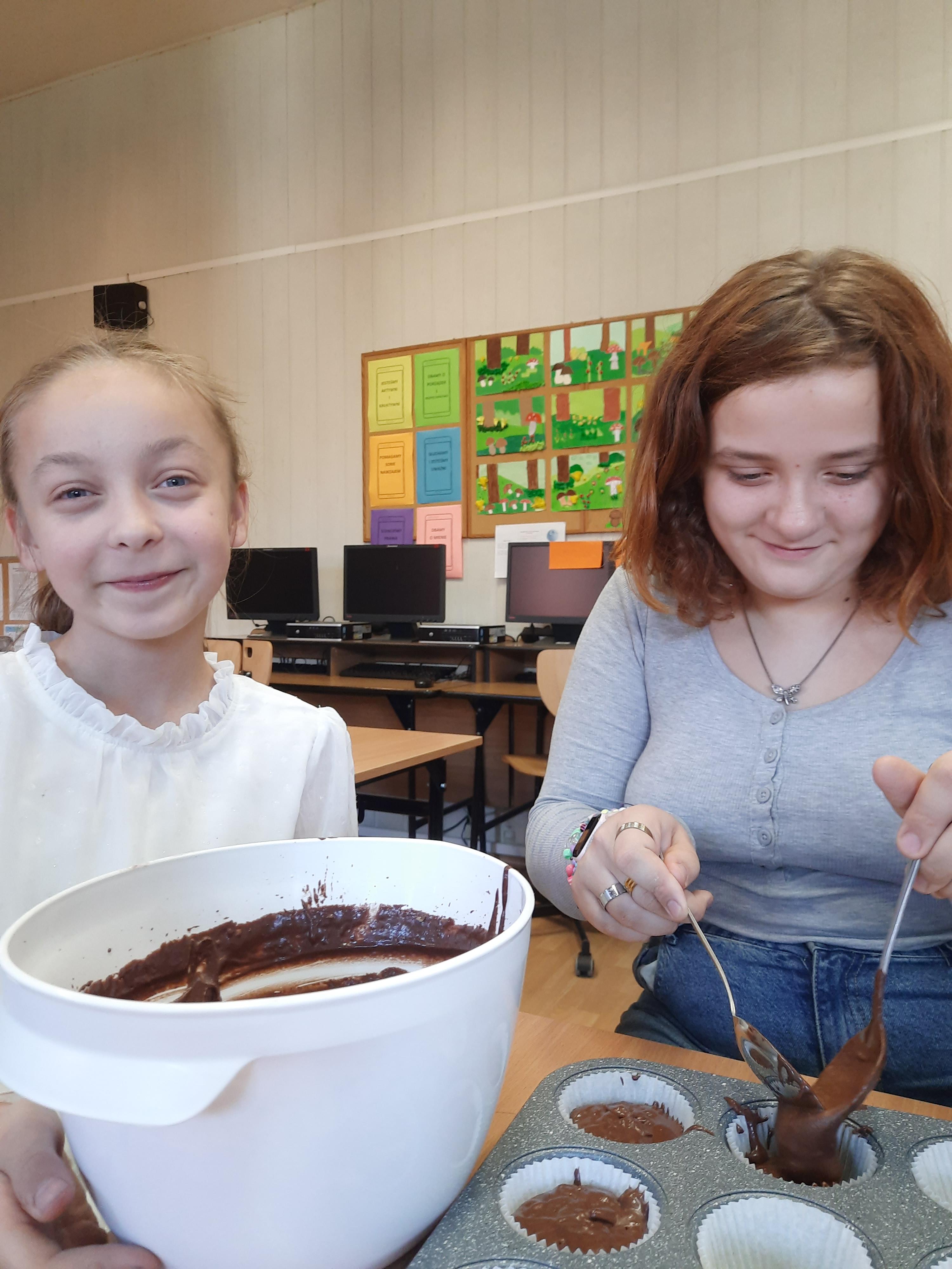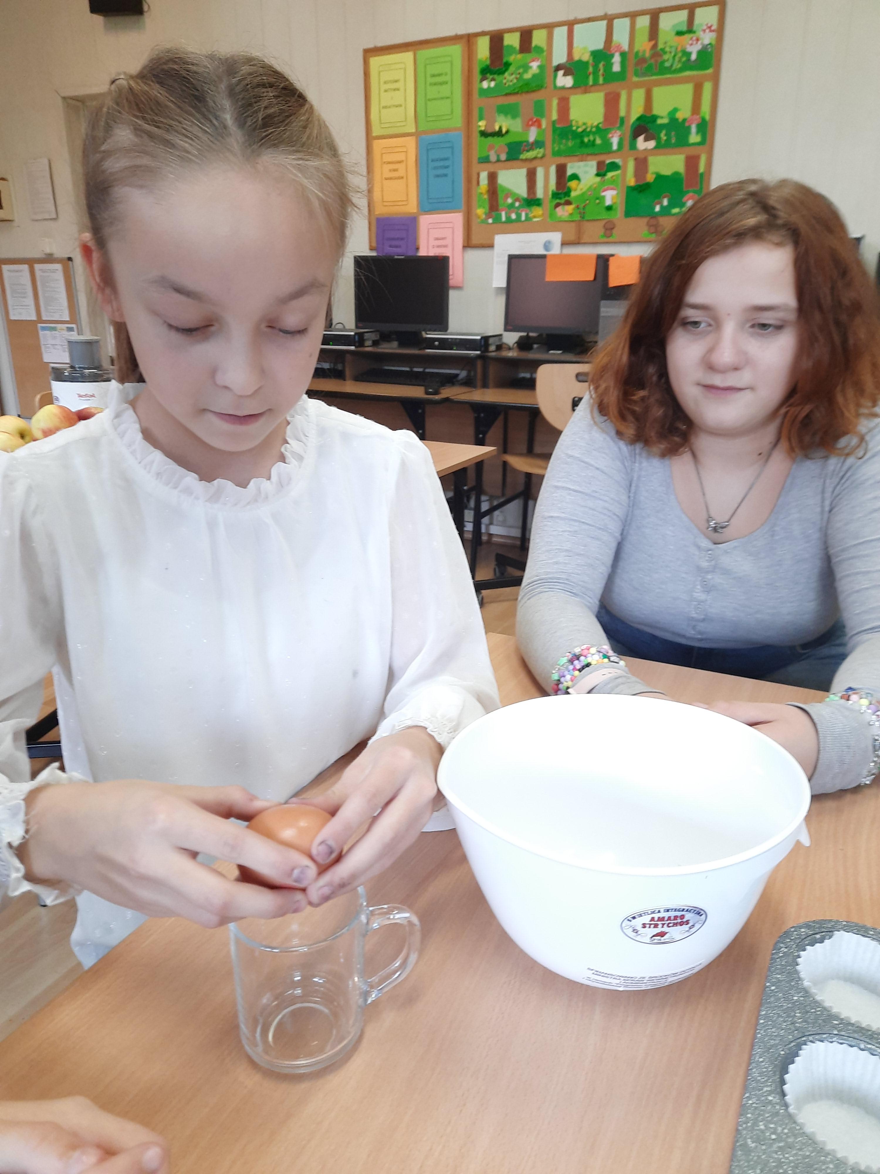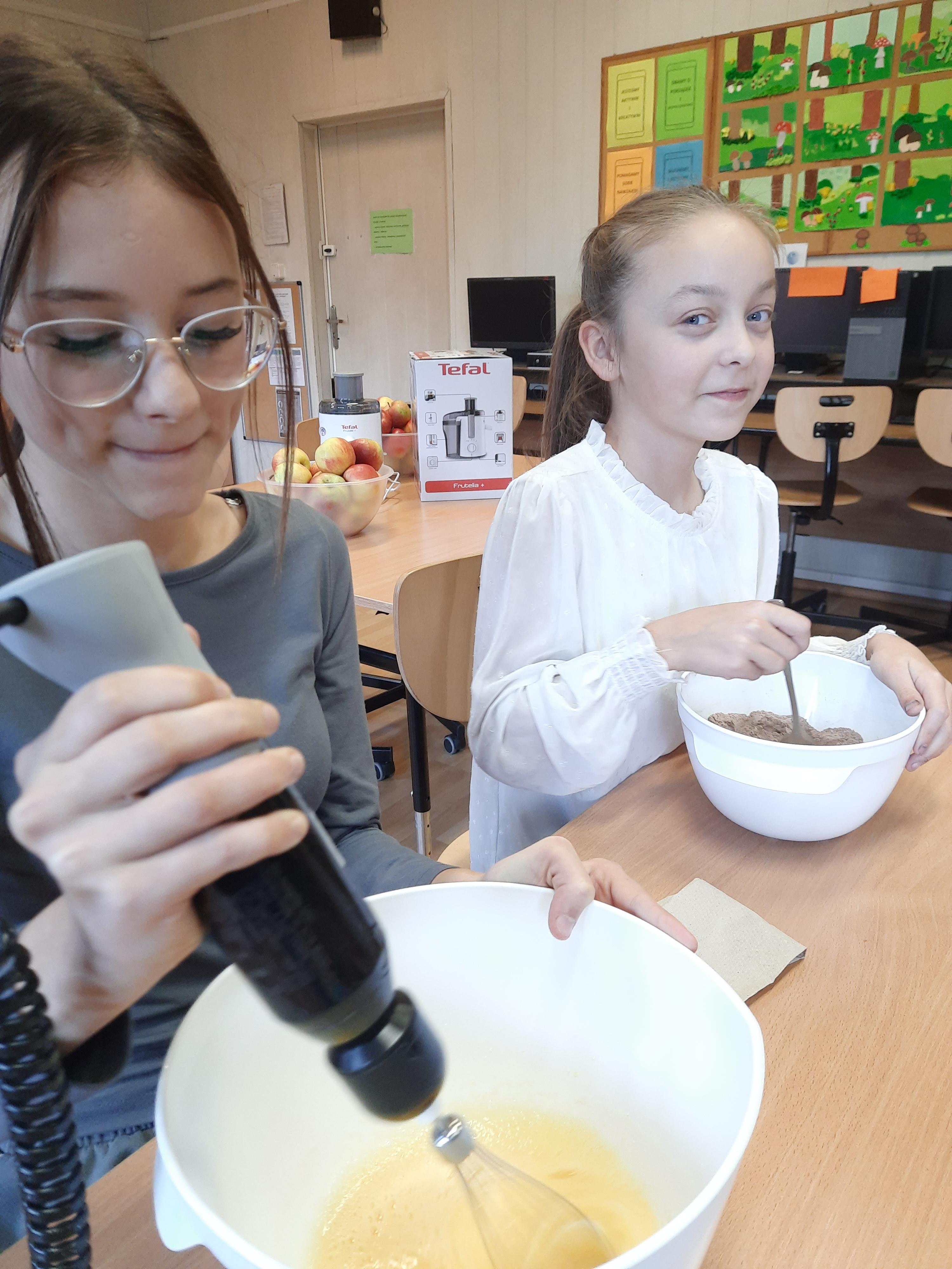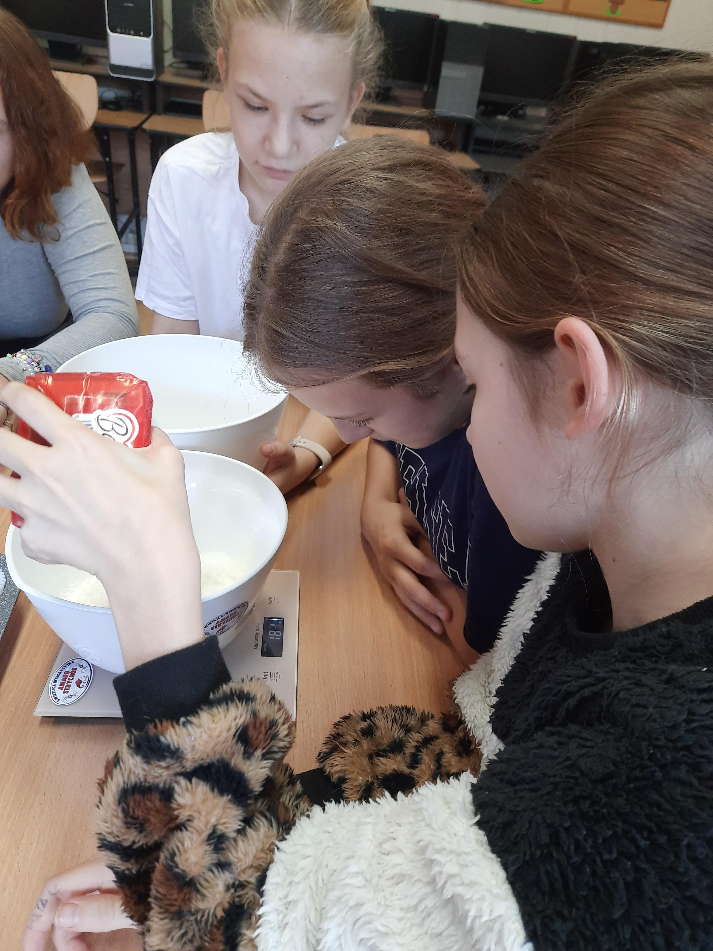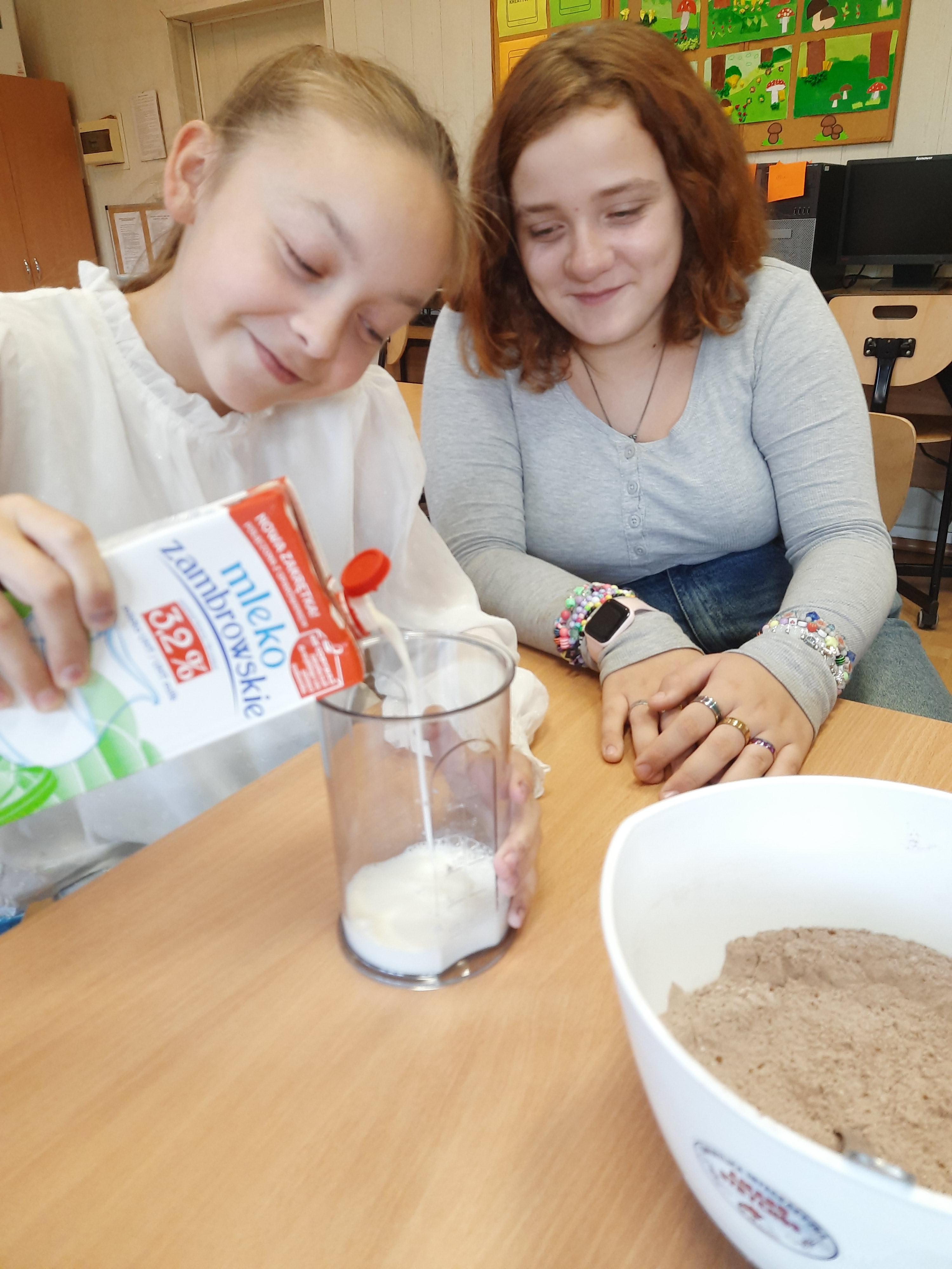 „Kreatywne zajęcia techniczne i kulinaria” rozwijają zdolności kreatywne, techniczne oraz kulinarne. Uczniowie z klasy 5b uczestniczący w zajęciach rozpoczęli kulinarną przygodę z czekoladowymi babeczkami. Nie były to jednak zwykłe słodkości – dzięki przemyślanym składnikom i wspólnej pracy, powstały wypieki nie tylko pyszne, ale i pełne wartości odżywczych. Podczas przygotowywania ciasta uczniowie dowiedzieli się, jak ważne jest precyzyjne odmierzenie składników, zachowanie higieny oraz współpraca z innymi. Największą radością była oczywiście degustacja.