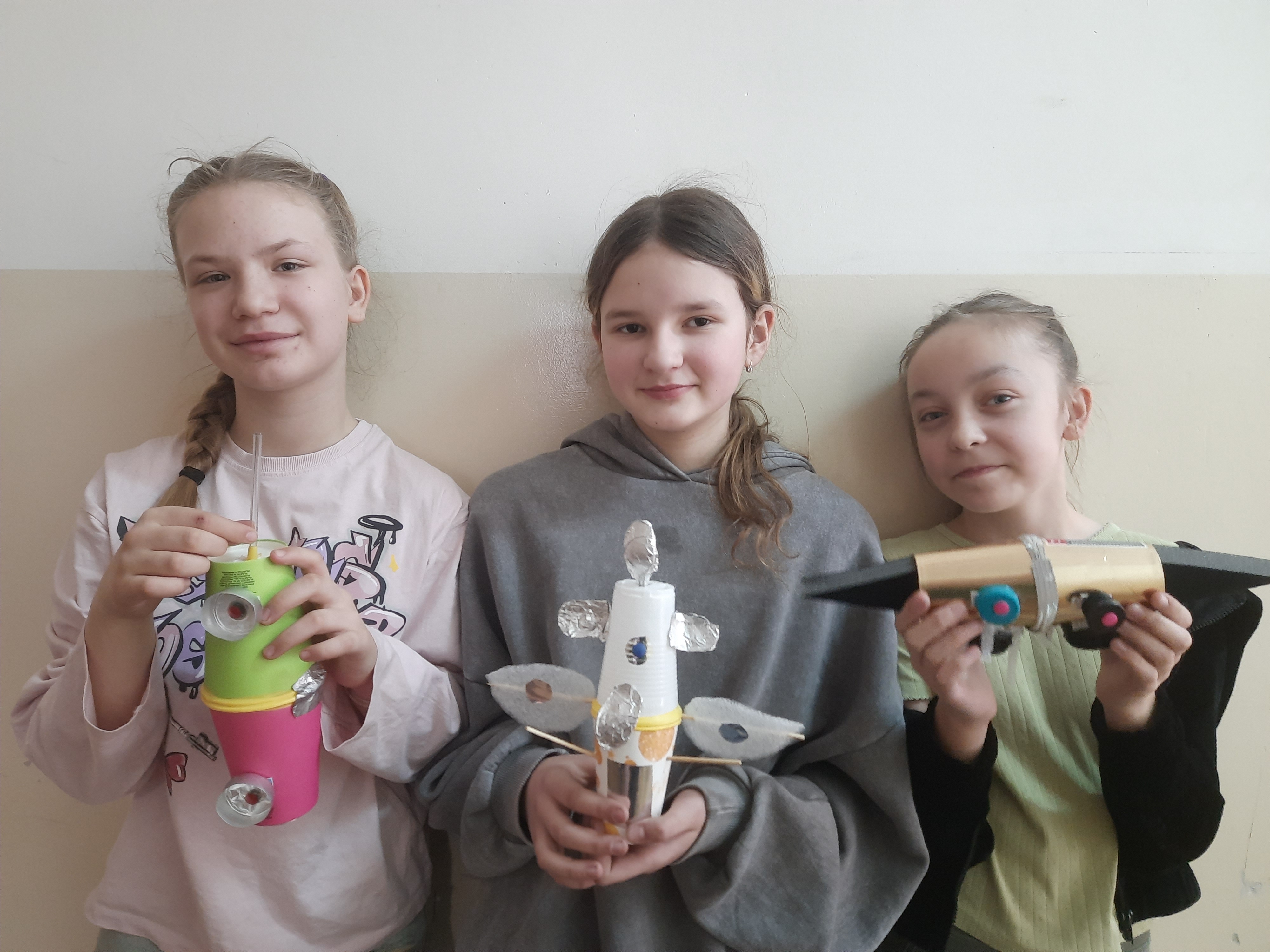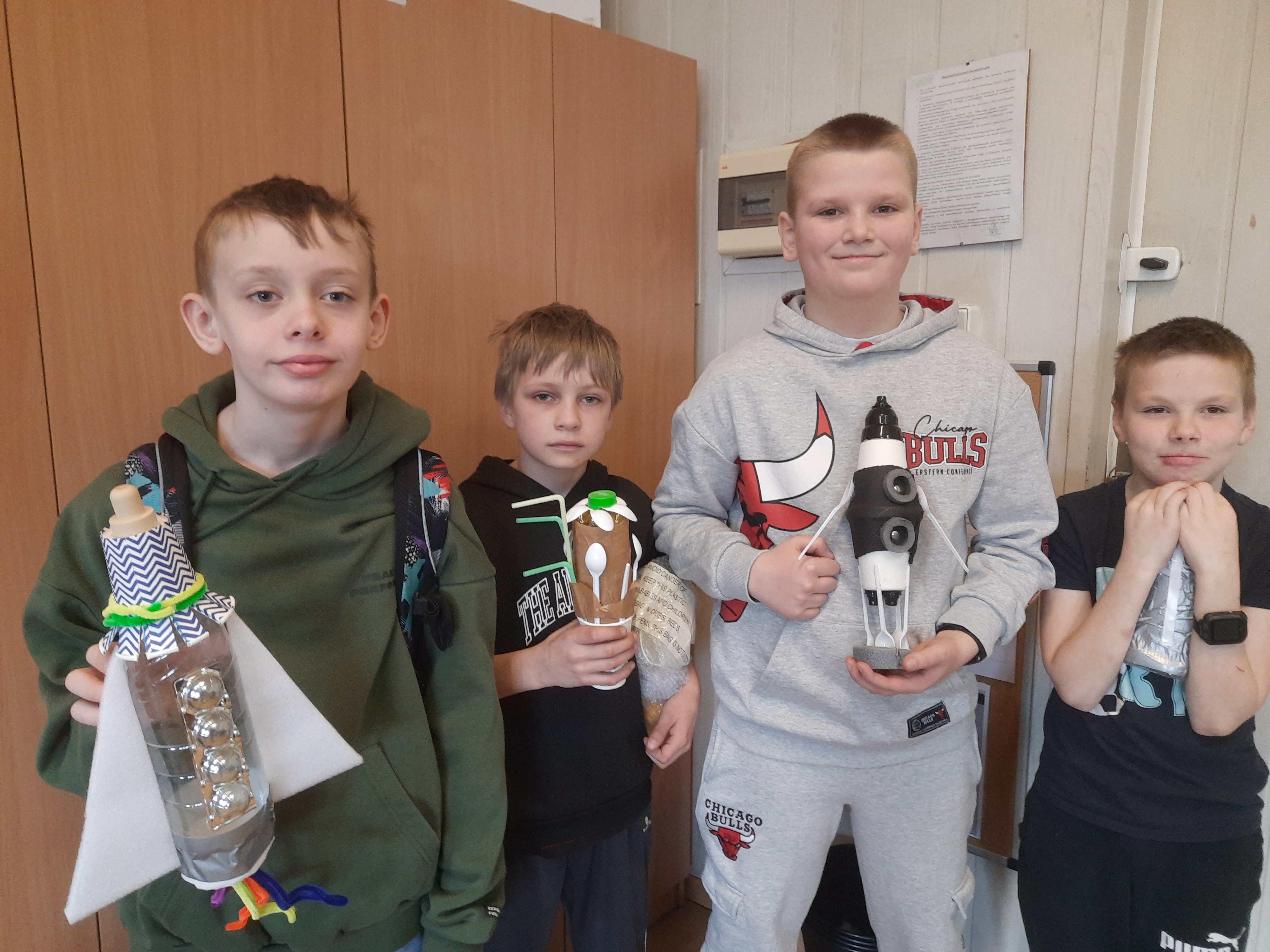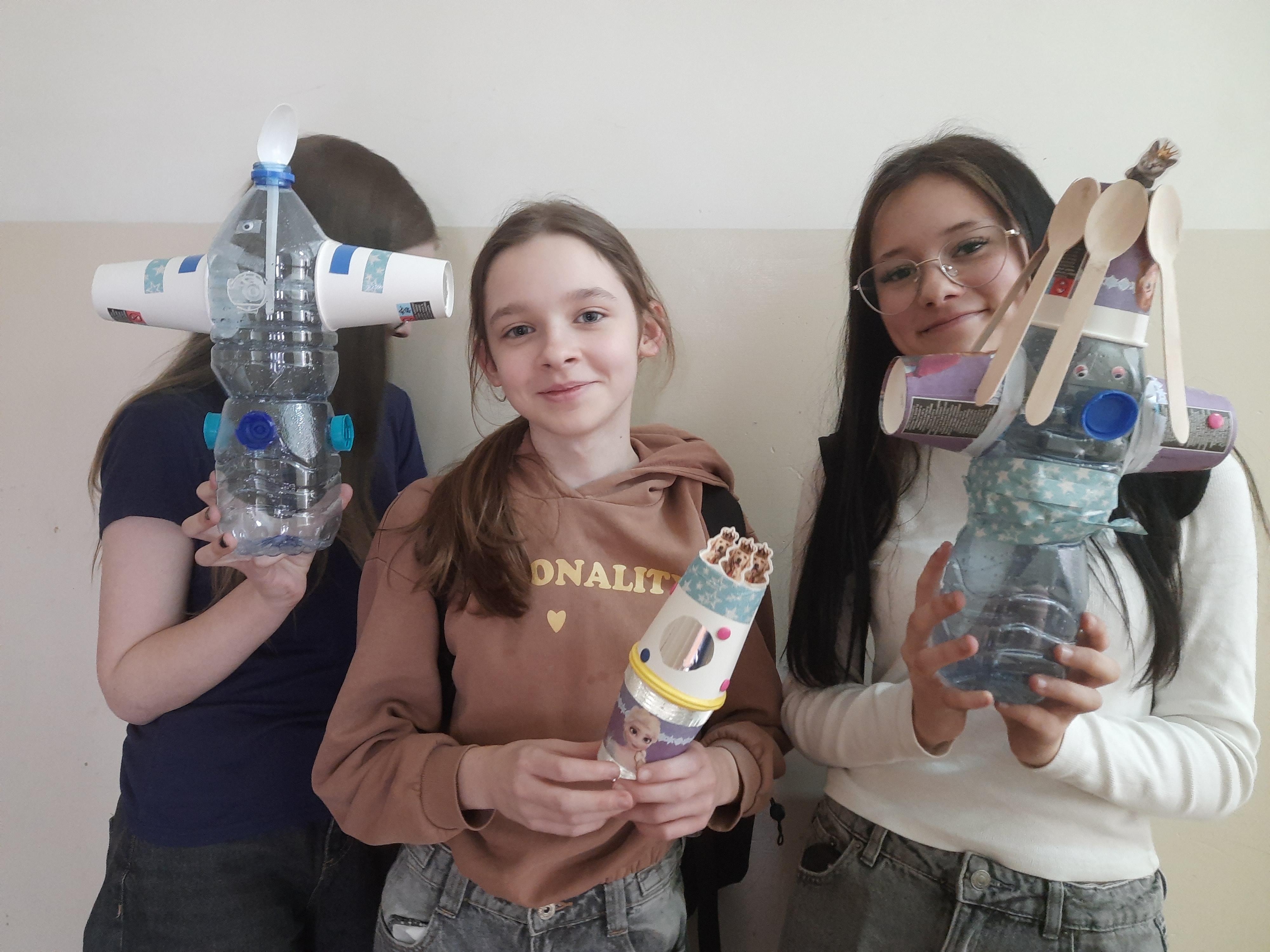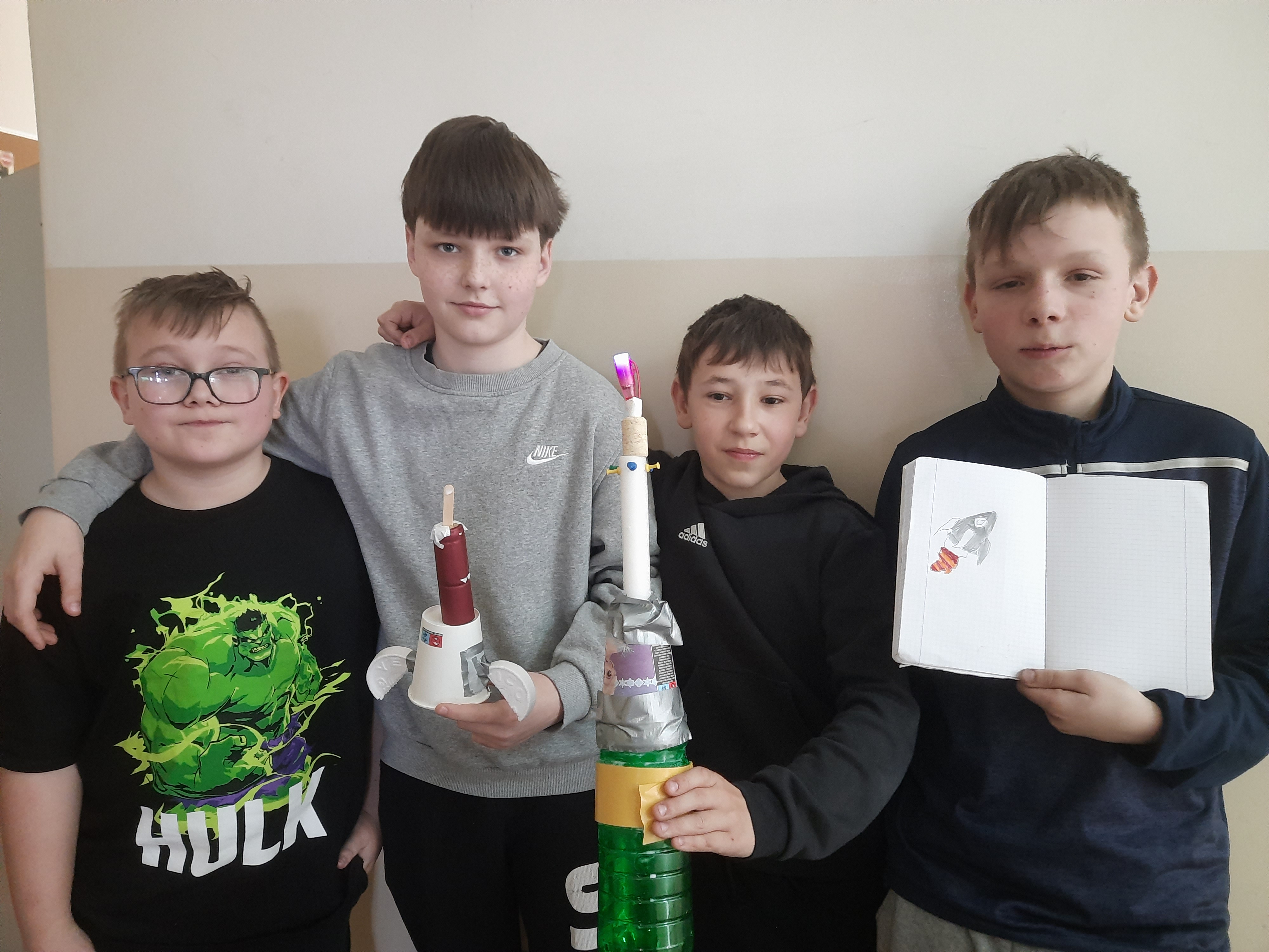 Piątoklasiści mieli za zadanie wykonać własne modele rakiet kosmicznych, wykorzystując różnorodne materiały i przede wszystkim – swoją wyobraźnię. Na ławkach pojawiły się kolorowe kartki, rolki po papierze, plastikowe butelki, taśmy klejące, kleje oraz nożyczki. Każdy uczeń miał za zadanie zaprojektować i wykonać własną rakietę. Niektórzy postawili na realistyczne modele inspirowane prawdziwymi pojazdami kosmicznymi, inni dali się ponieść fantazji, tworząc rakiety w niezwykłych kształtach i barwach. Była to nauka poprzez zabawę, która na długo pozostanie w pamięci piątoklasistów.
