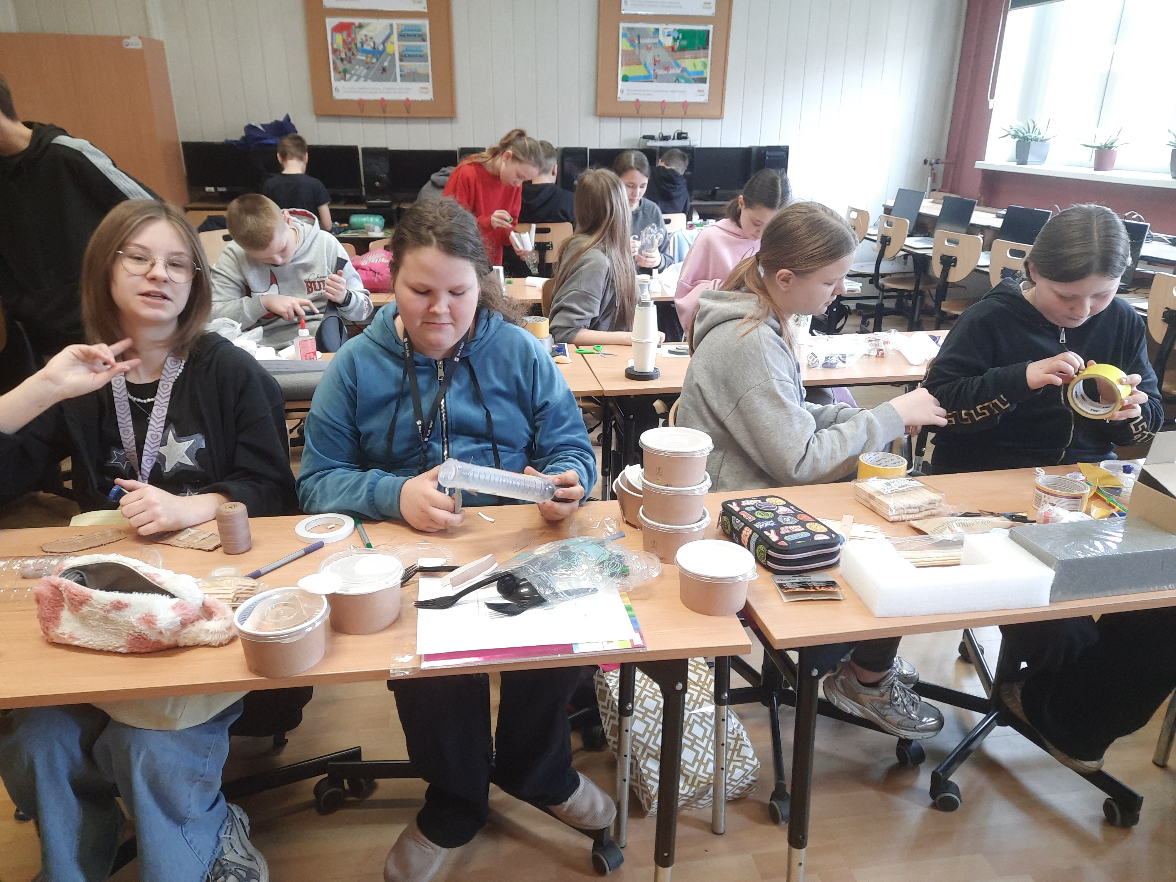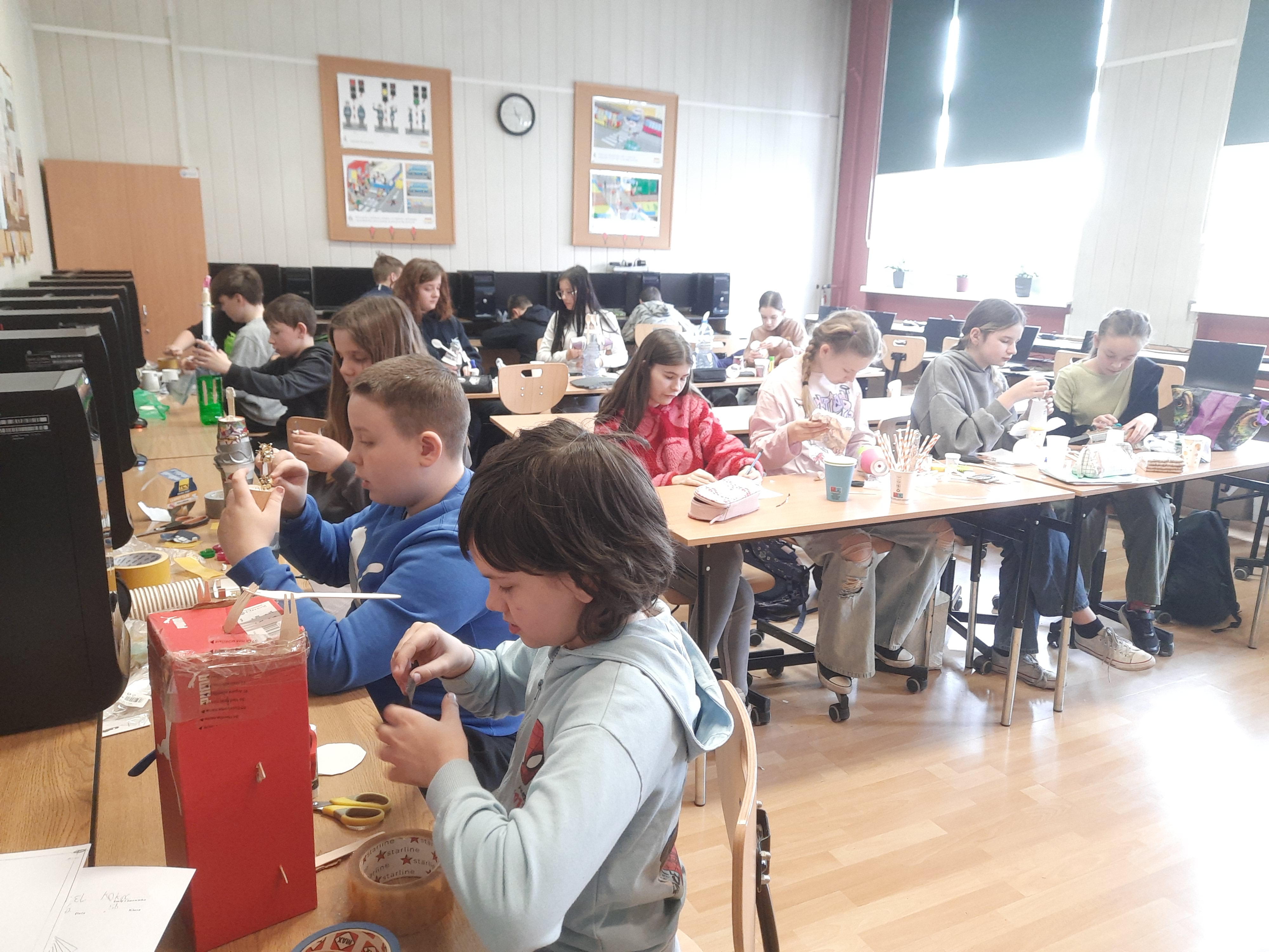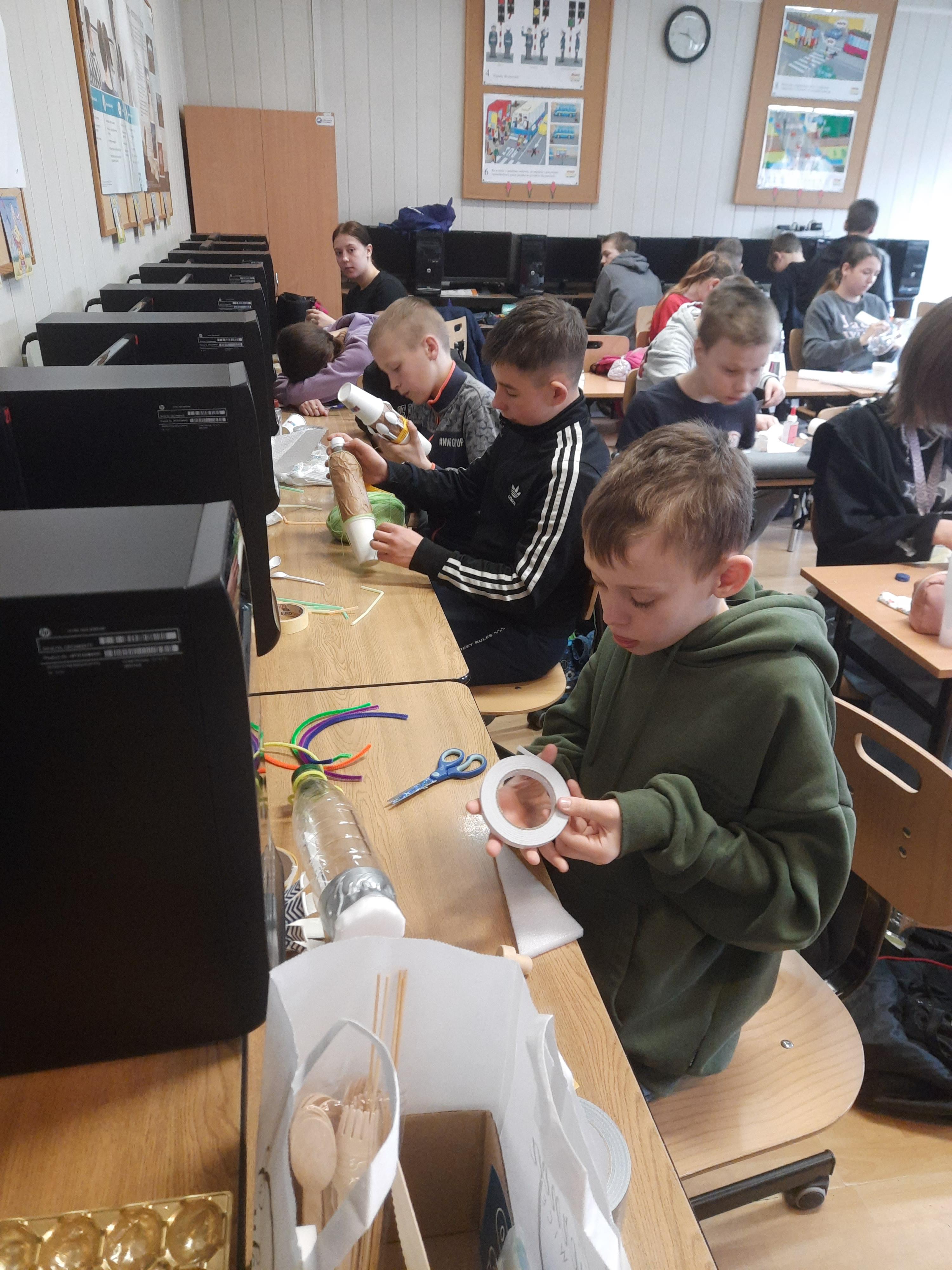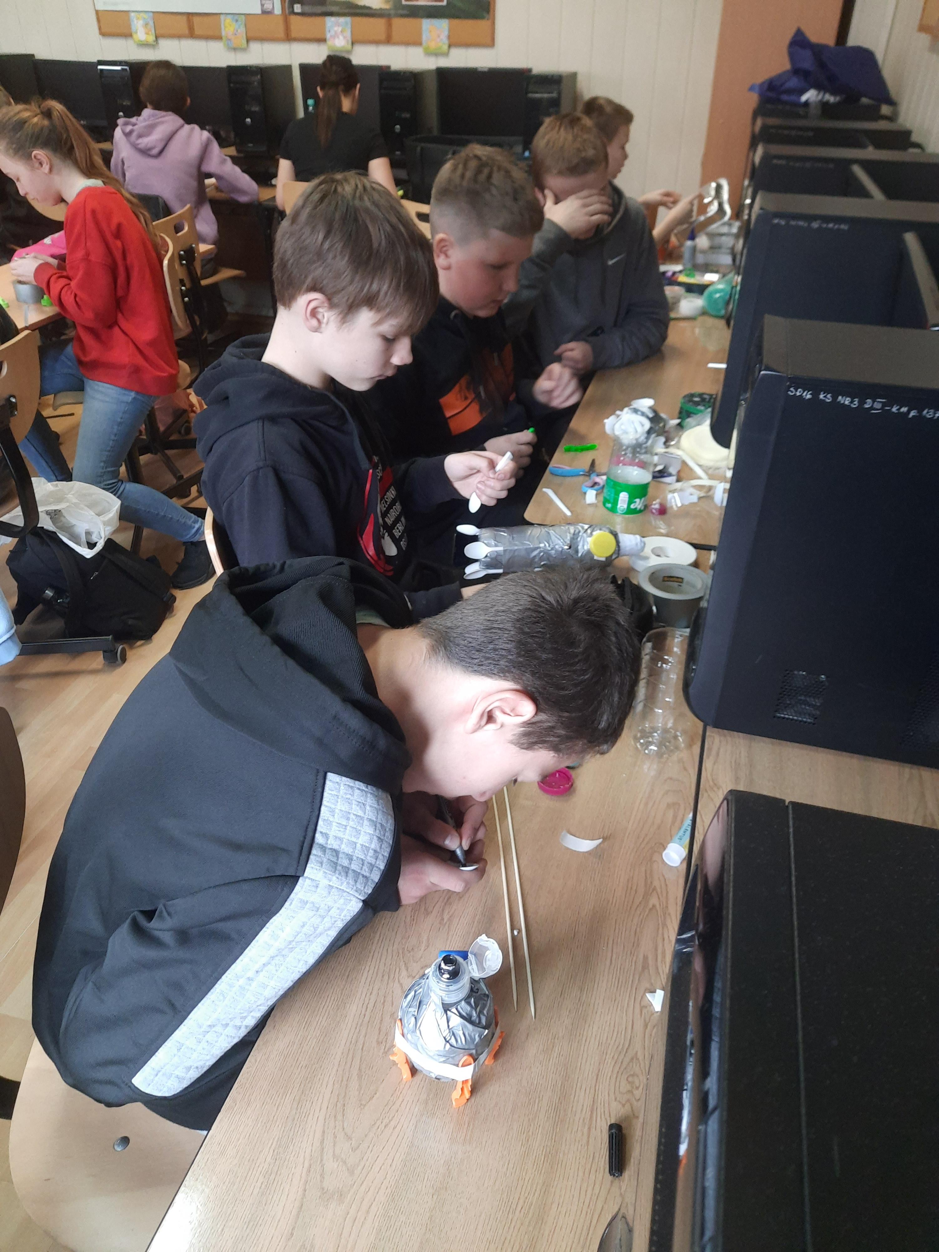 Piątoklasiści mieli za zadanie wykonać własne modele rakiet kosmicznych, wykorzystując różnorodne materiały i przede wszystkim – swoją wyobraźnię. Na ławkach pojawiły się kolorowe kartki, rolki po papierze, plastikowe butelki, taśmy klejące, kleje oraz nożyczki. Każdy uczeń miał za zadanie zaprojektować i wykonać własną rakietę. Niektórzy postawili na realistyczne modele inspirowane prawdziwymi pojazdami kosmicznymi, inni dali się ponieść fantazji, tworząc rakiety w niezwykłych kształtach i barwach. Była to nauka poprzez zabawę, która na długo pozostanie w pamięci piątoklasistów.