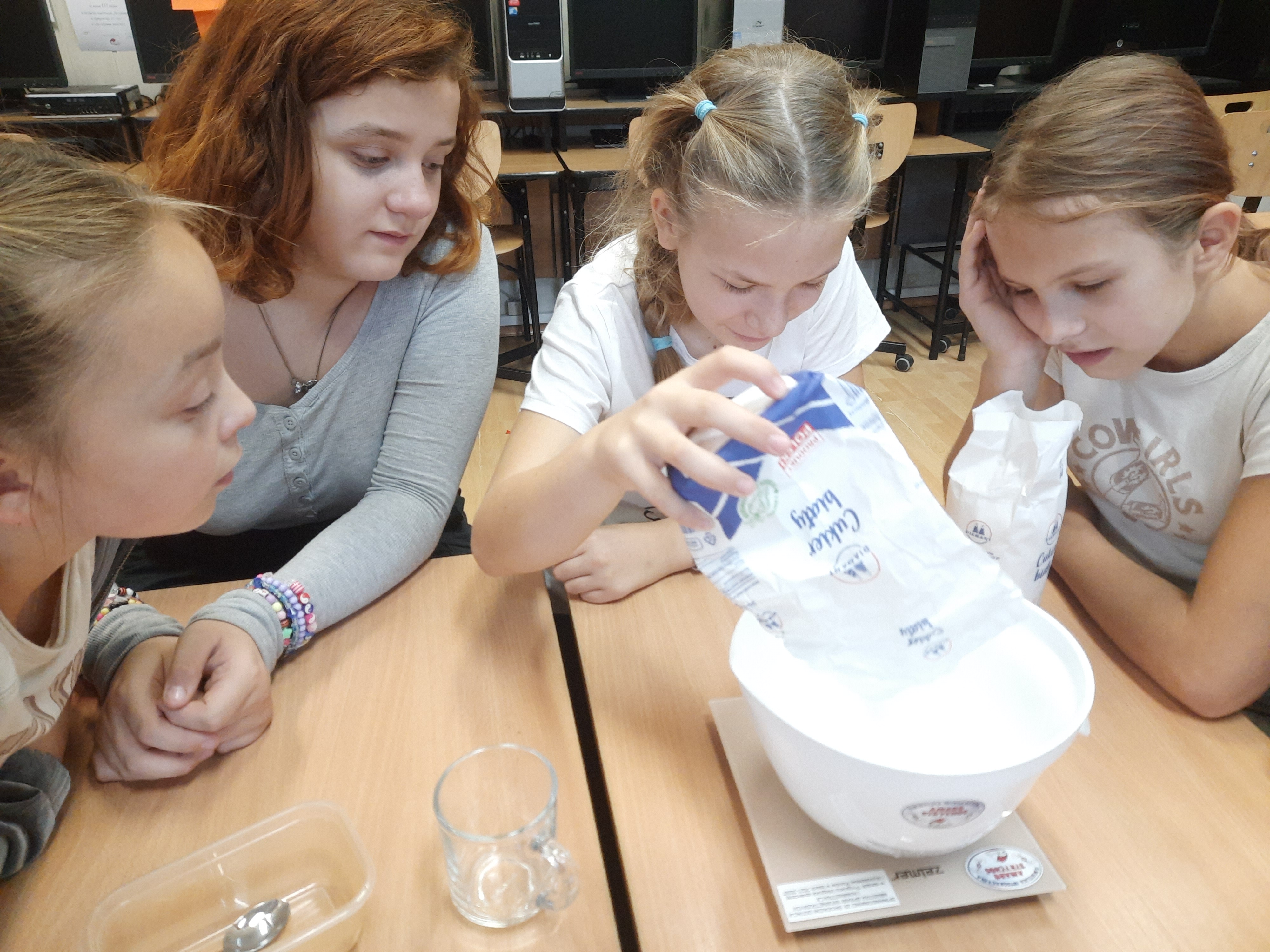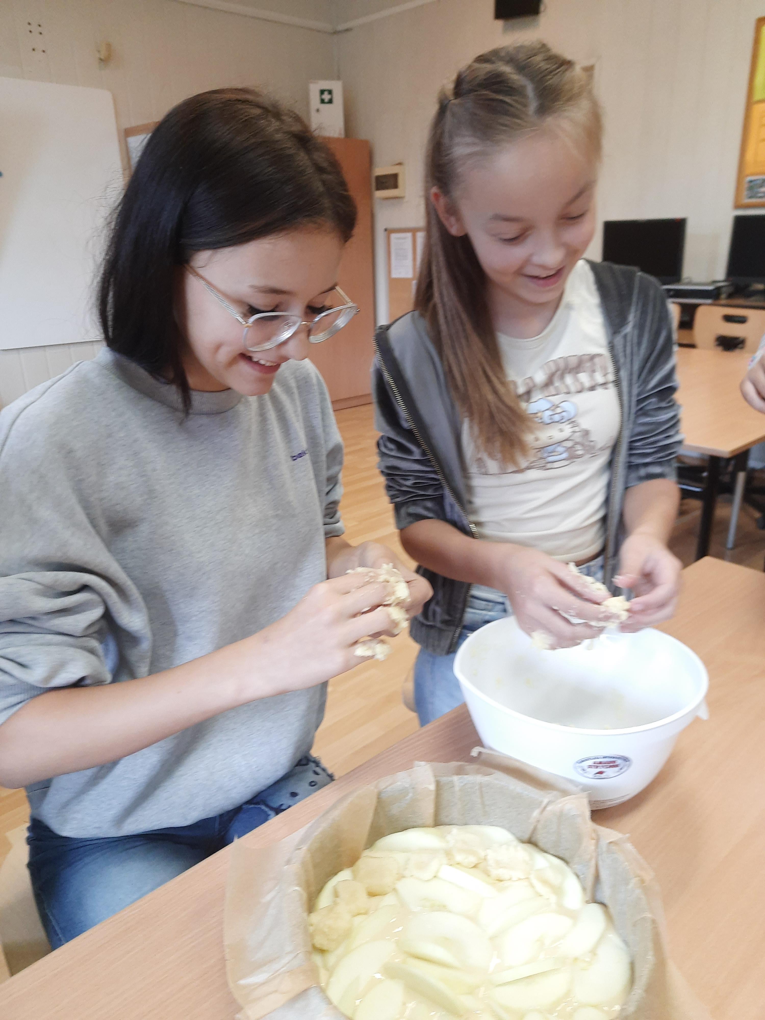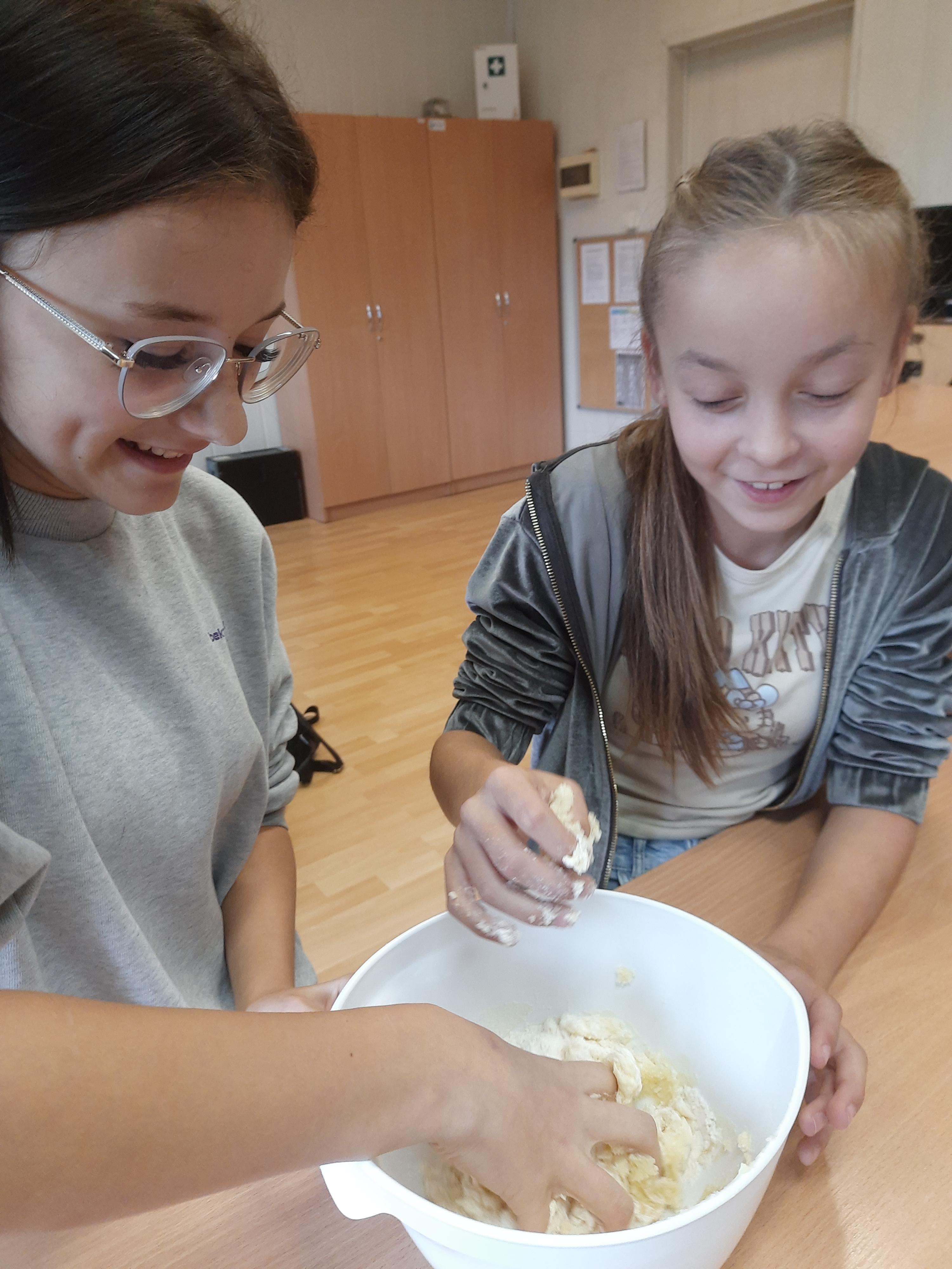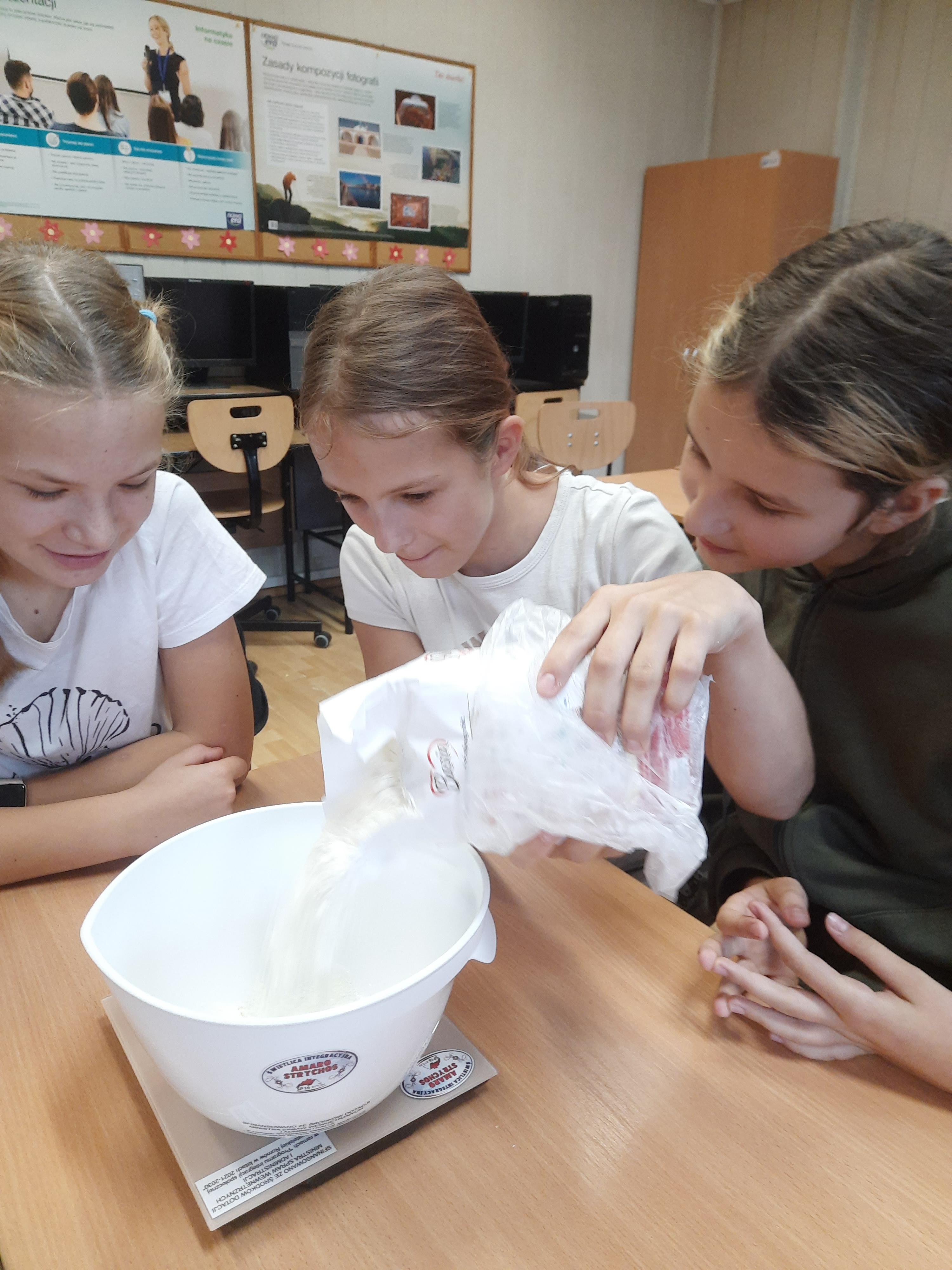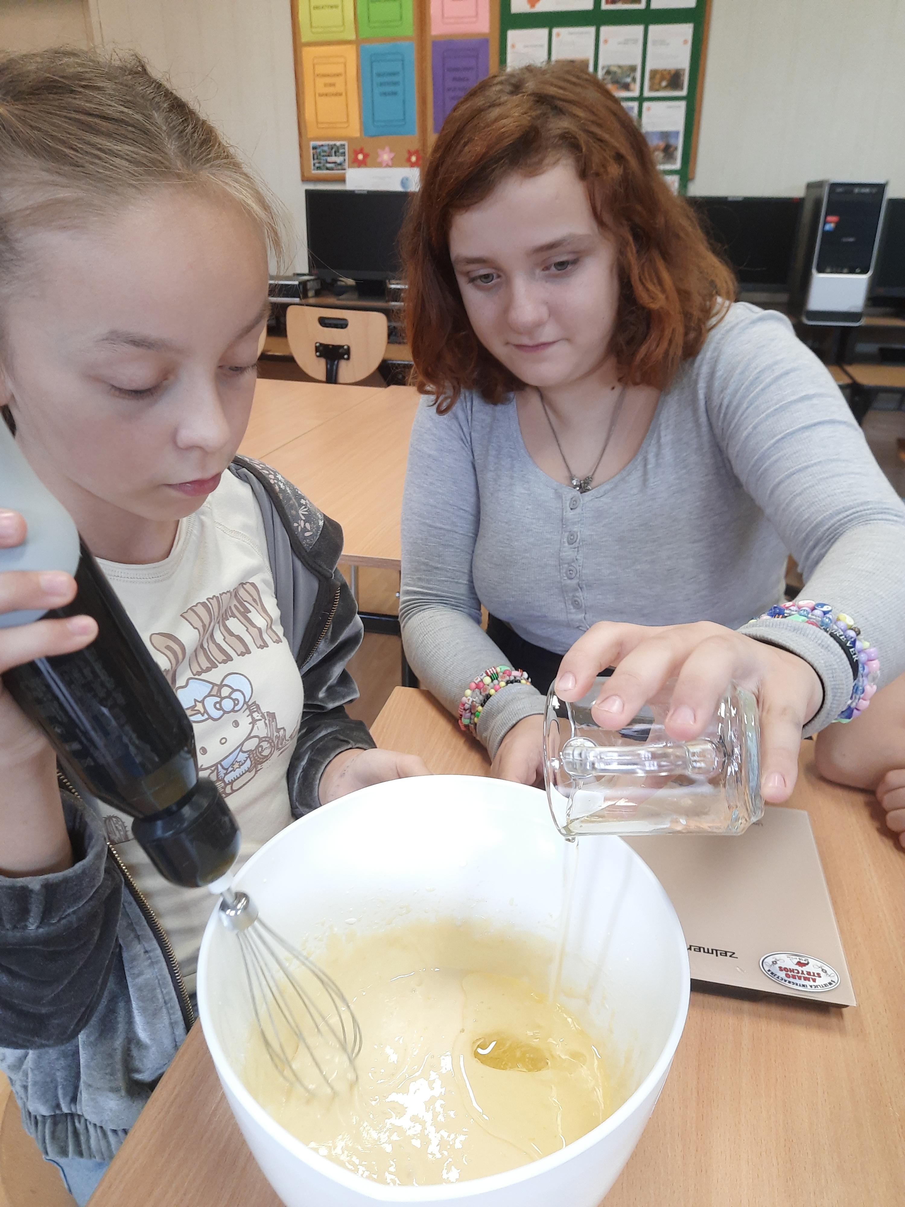 Zajęcia rozpoczęły się od omówienia potrzebnych składników oraz zasad bezpieczeństwa i higieny w kuchni. Następnie uczestnicy, pod czujnym okiem prowadzącego, przystąpili do przygotowania ciasta. Odmierzali składniki, mieszali jogurt z jajkami i mąką, a także poznawali znaczenie odpowiednich proporcji w wypiekach. Uczestnicy dowiedzieli się, jak połączyć masło, mąkę i cukier, aby uzyskać idealnie sypką konsystencję. Uczestnicy byli dumni z efektów swojej pracy i chętnie dzielili się wrażeniami.