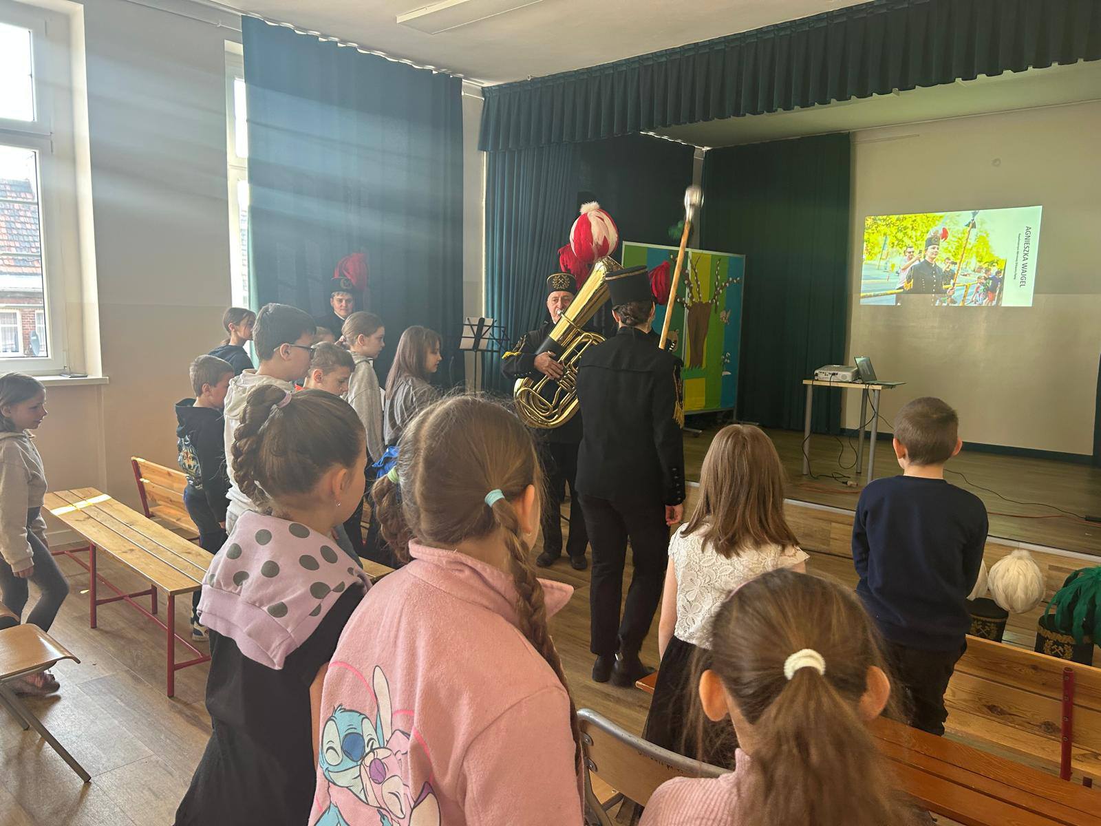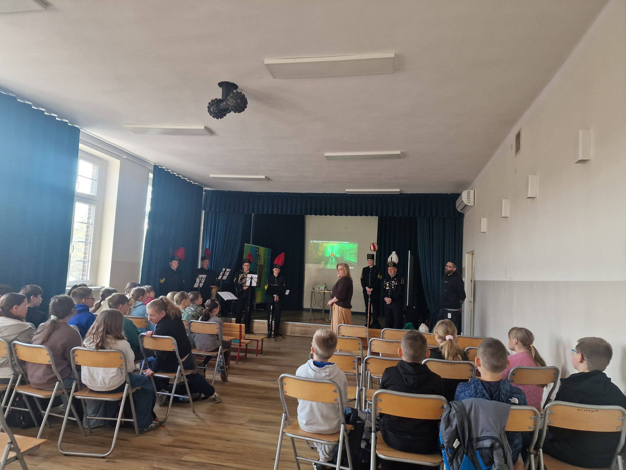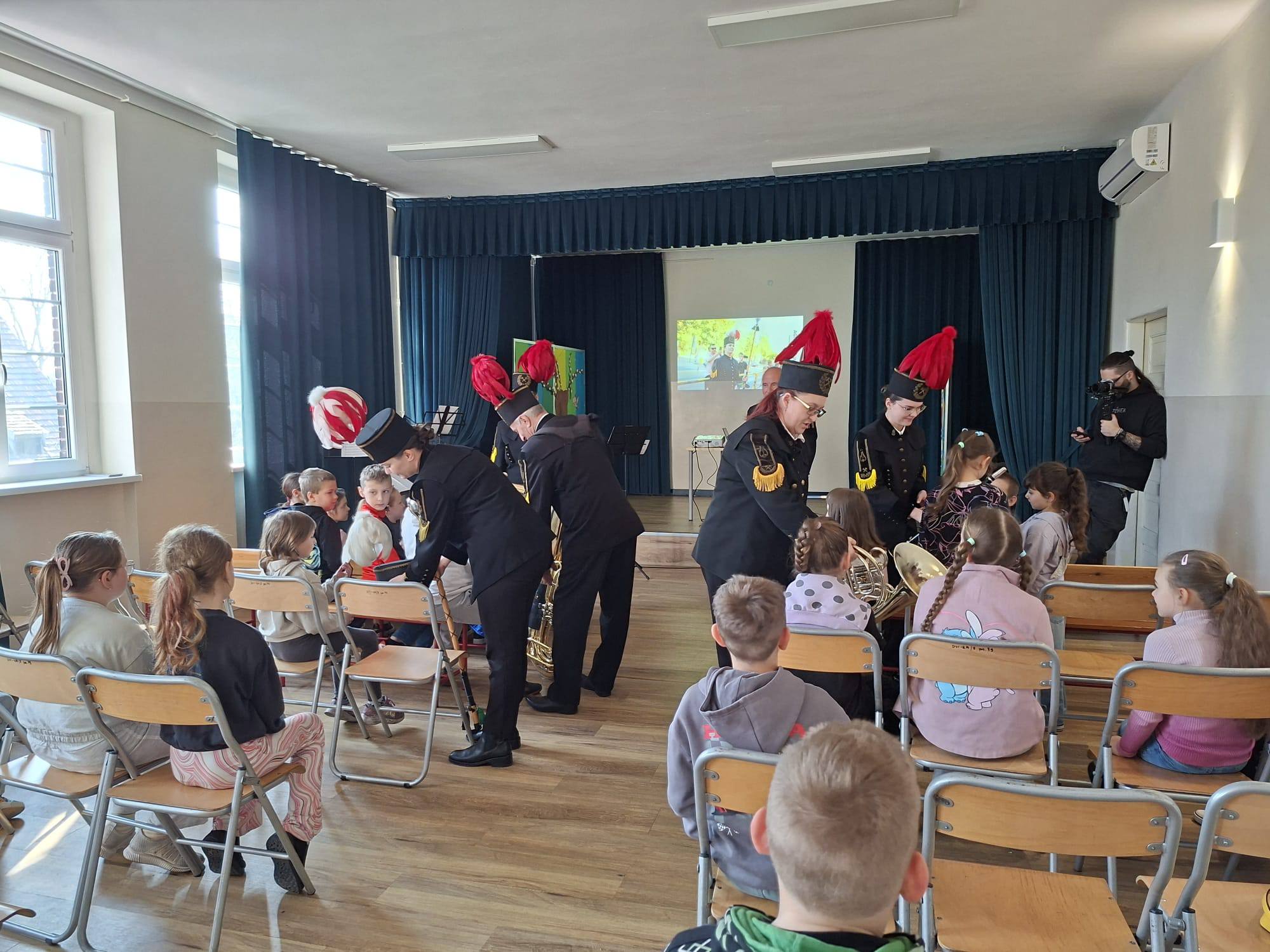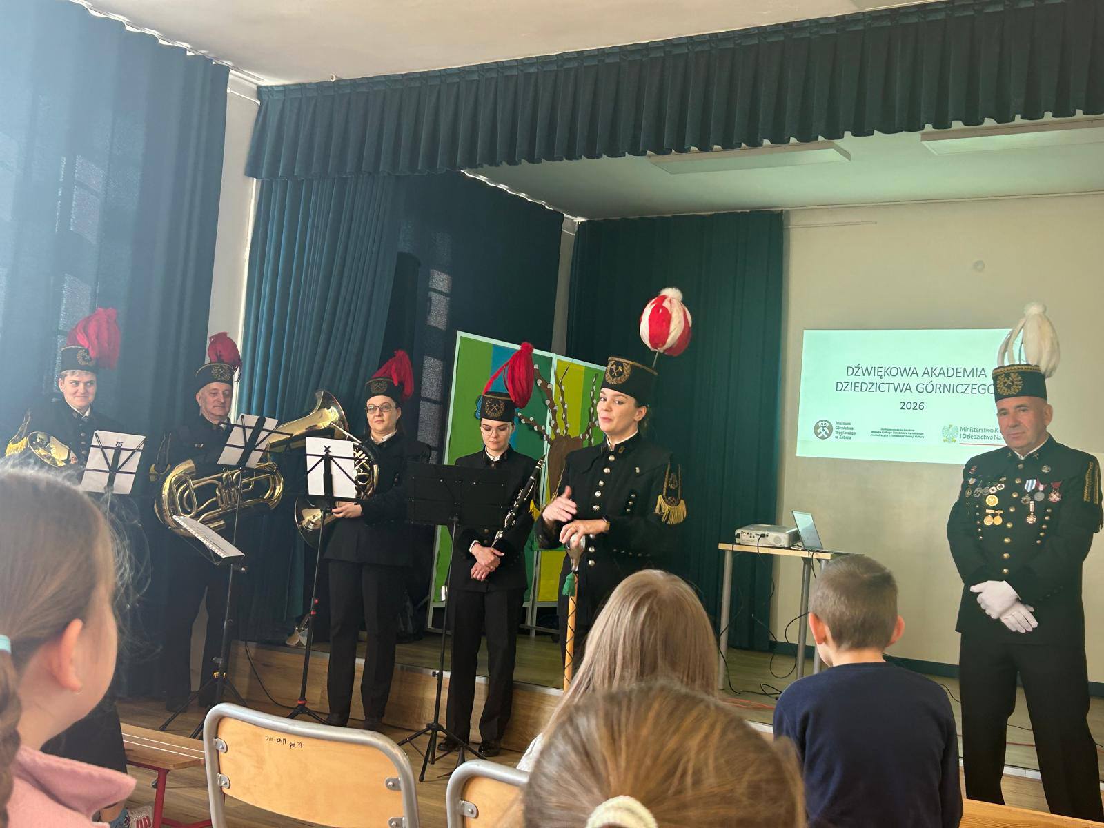 Dzisiaj odbyło się inspirujące spotkanie z muzykami z Muzeum Górnictwa. Spotkanie rozpoczęło się od krótkiej prezentacji strojów górniczych, instrumentów.