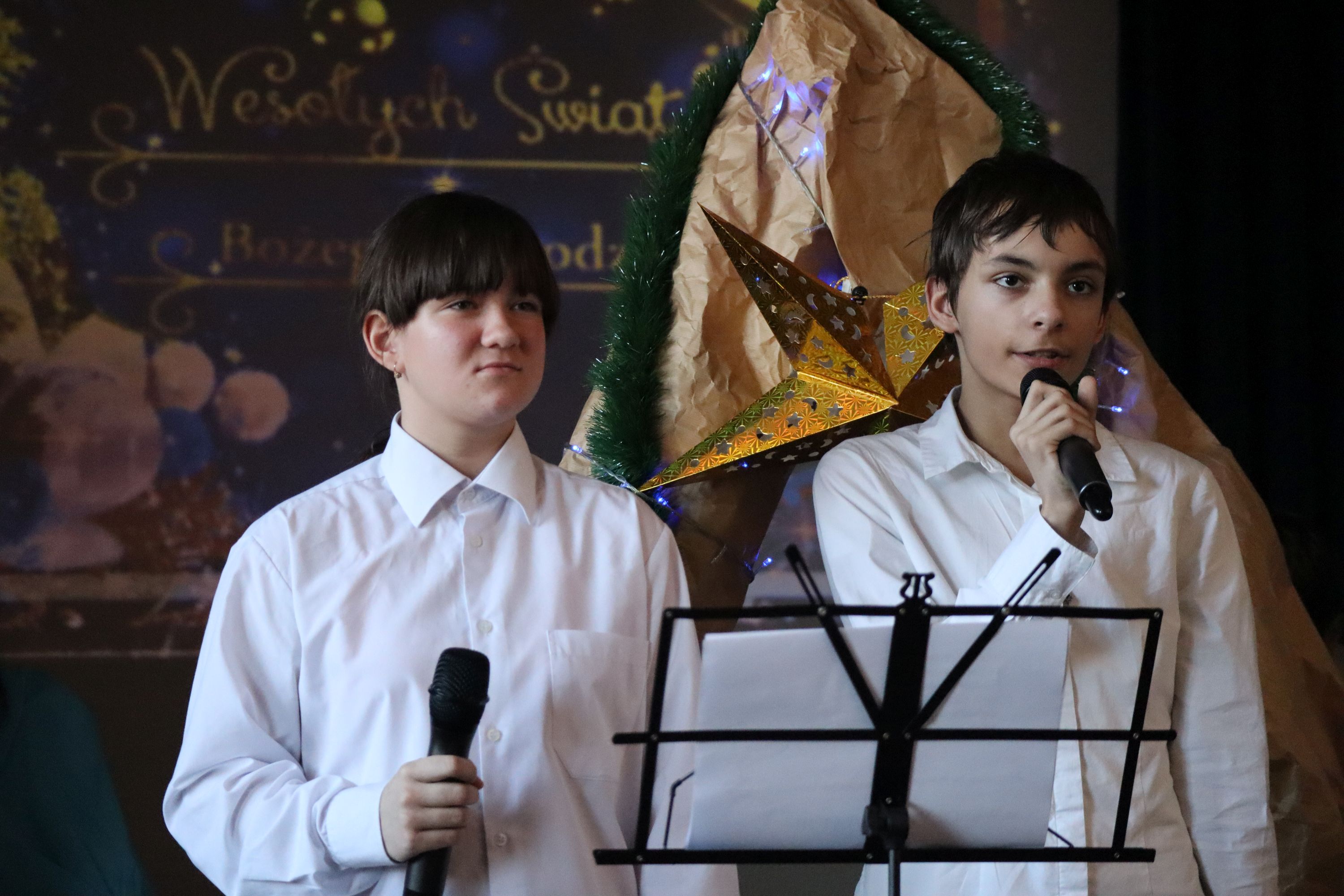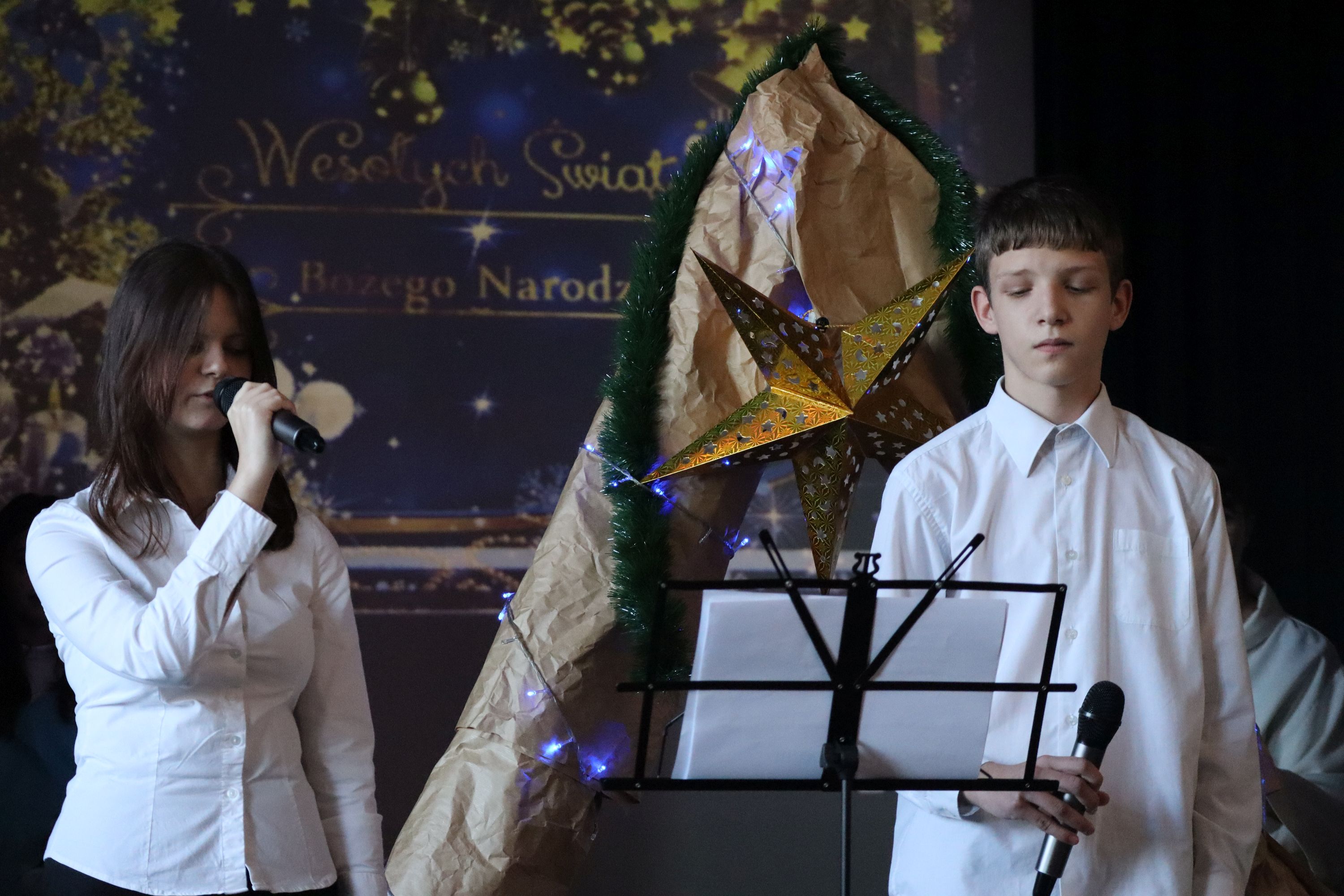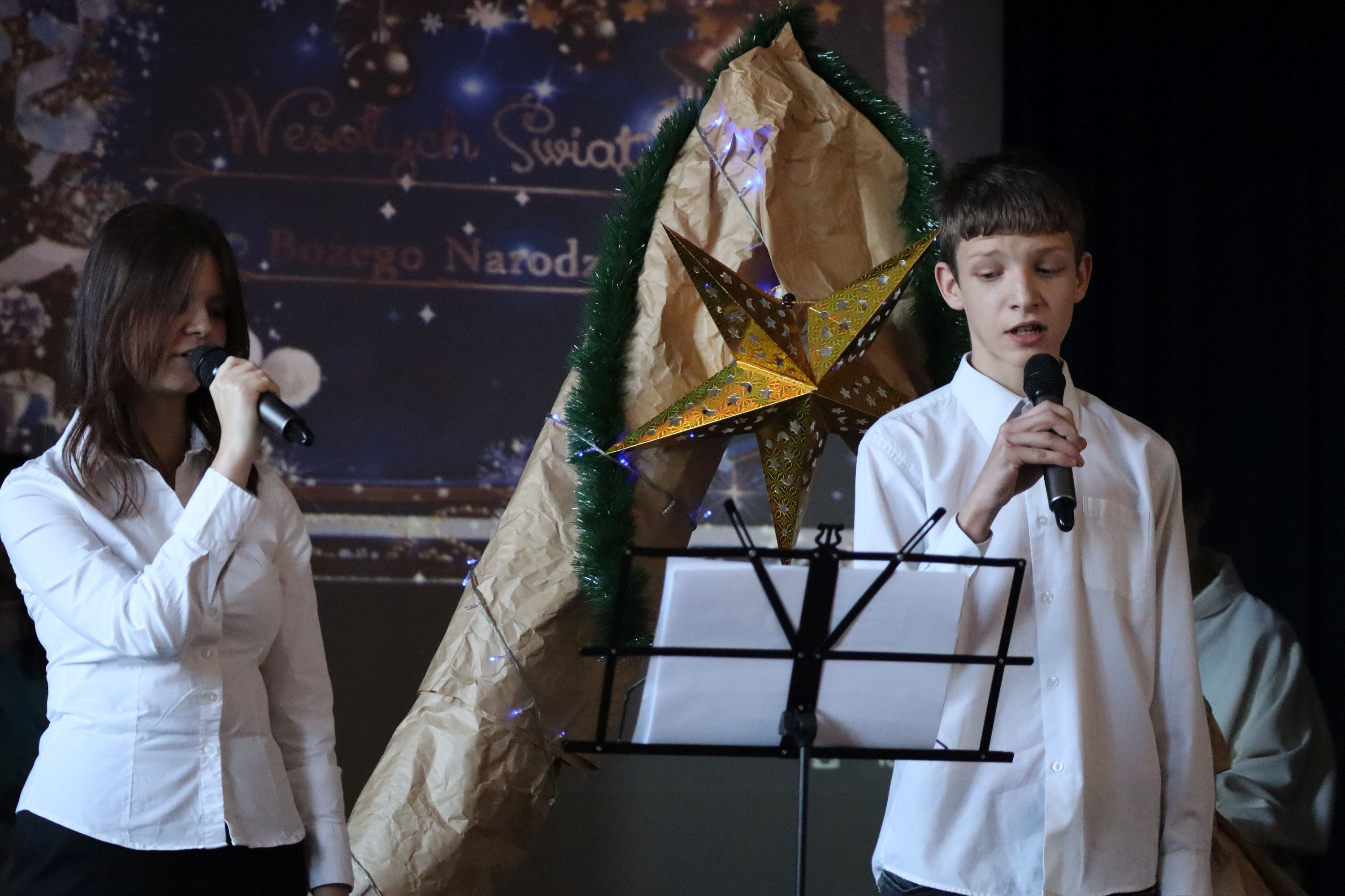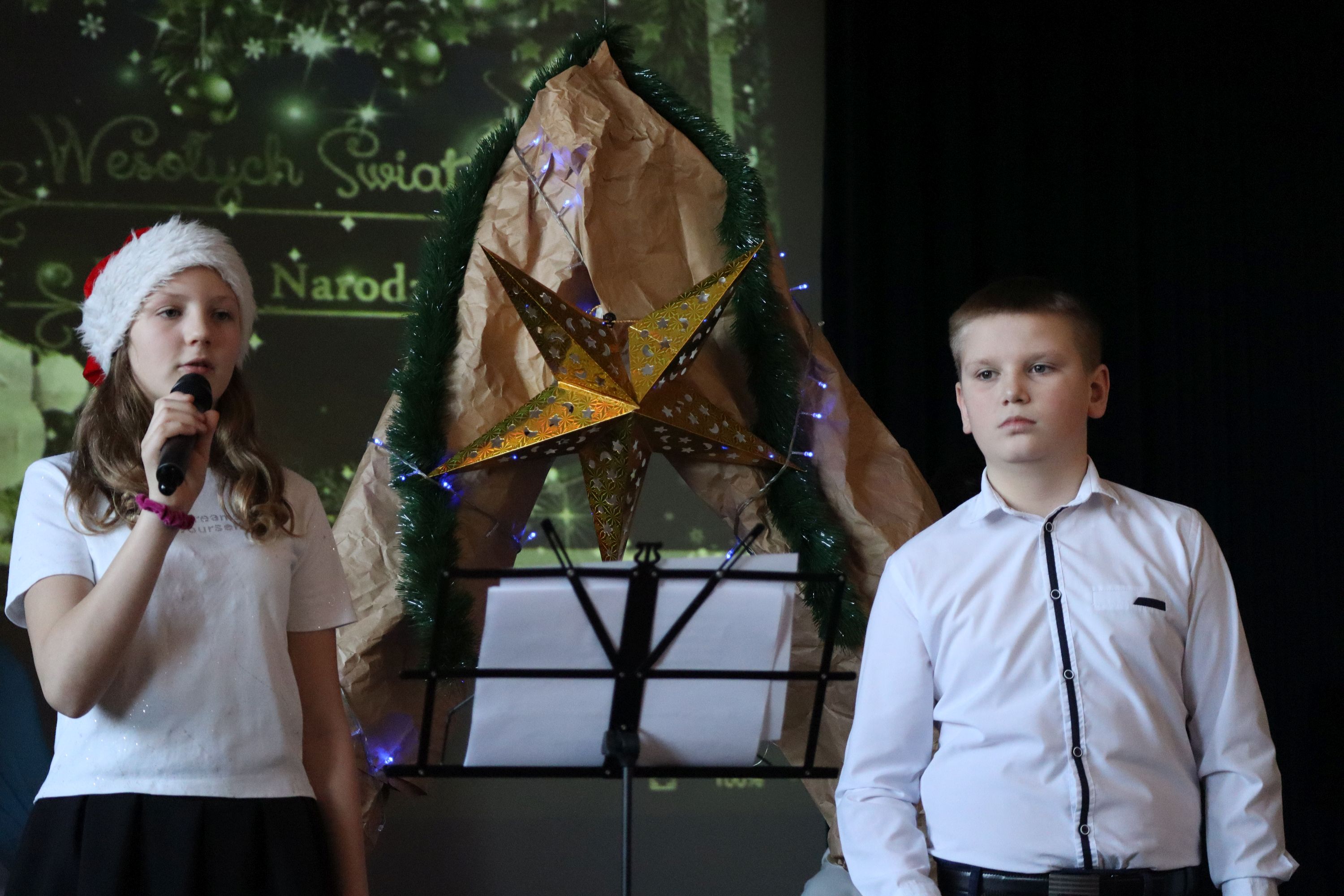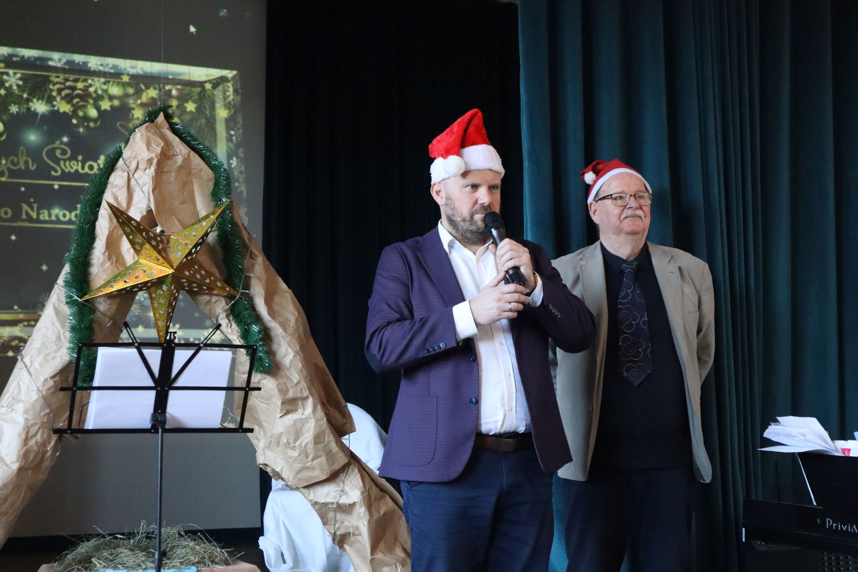 Słowa podziękowania kieruję do pana Grzegorza nauczyciela muzyki, którego profesjonalizm słychać było w młodych wykonawcach. Ogrom pracy a jednocześnie pełne entuzjazmu podejście do dzieci owocowało pięknie dobranymi i wykonanymi kolędami i pastorałkami. Panu Adamowi za akompaniament gitarowy, panom konserwatorom za prace nad scenografią, koleżankom i kolegom za wyrozumiałość i pomoc oraz paniom Dyrektorkom za wsparcie i pomoc.