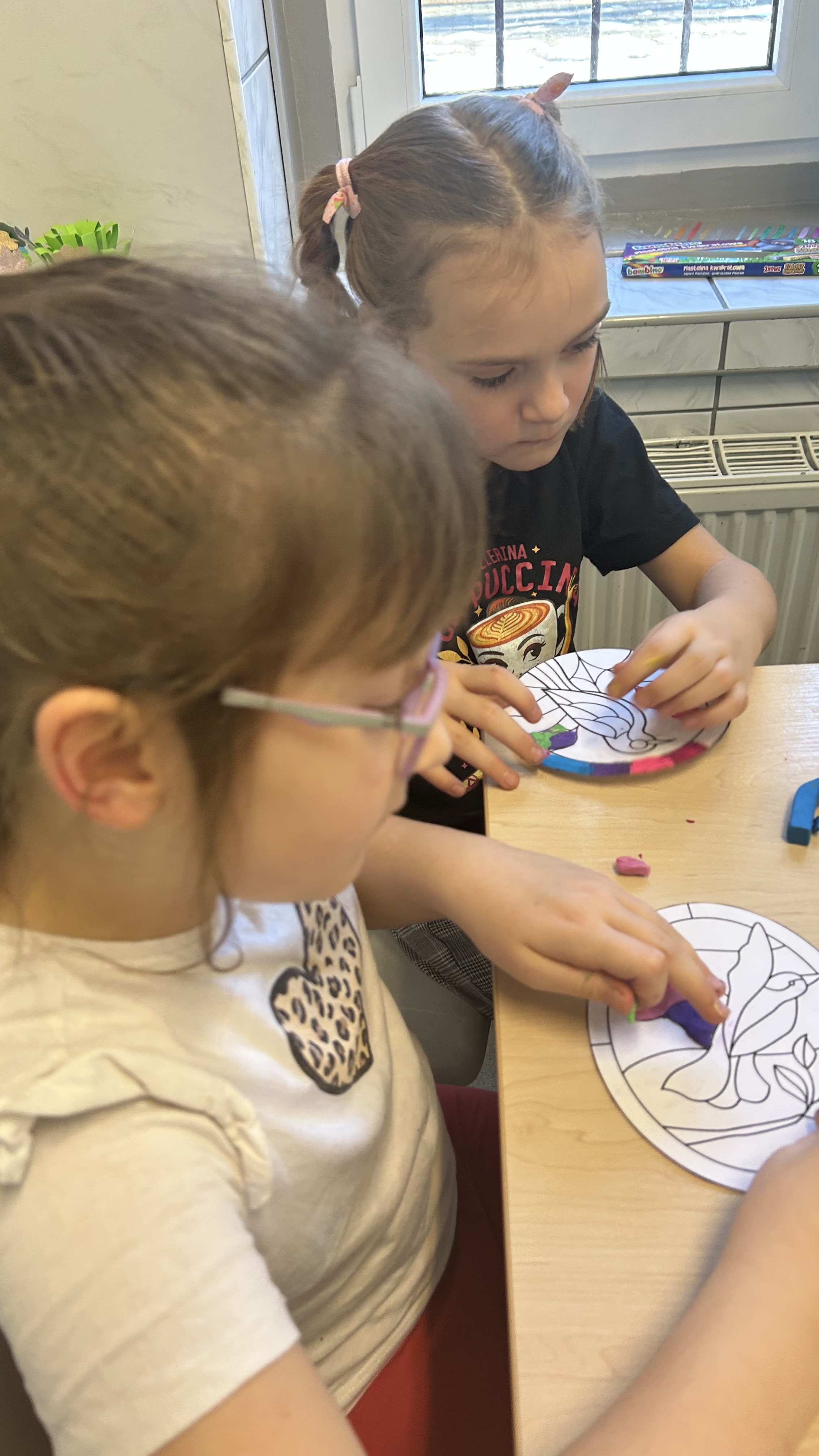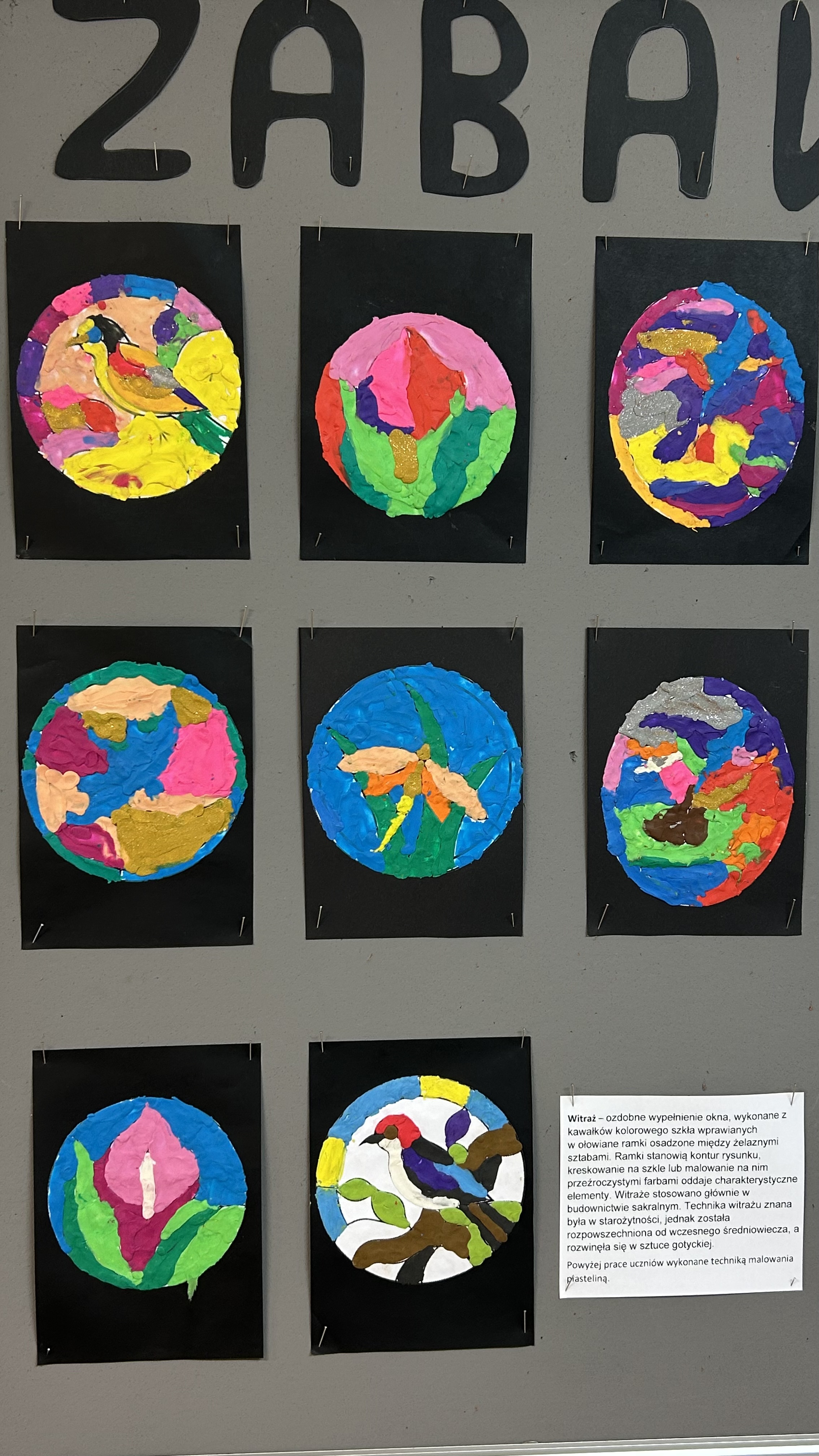 Za nami kolejne zadanie zrealizowane w ramach projektu „Zabawa sztuką”. Tym razem uczniowie wykonali witraże, ale w dość nietypowy sposób – malując plasteliną.