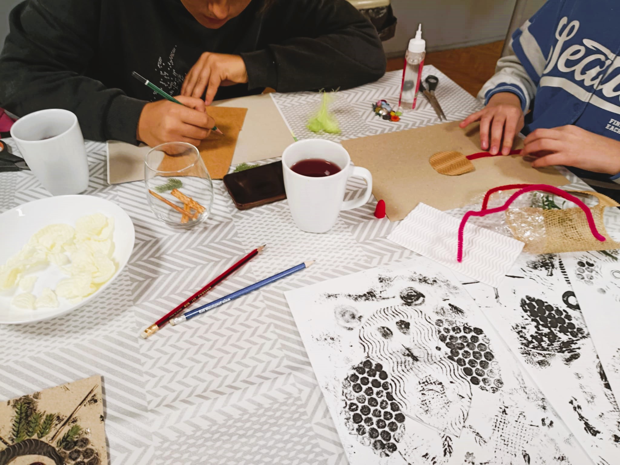 oraz wykonujemy kartki świąteczne dla mieszkańców z Domu Pomocy Społecznej "Kombatant" i Domu Seniora "Dolomity".