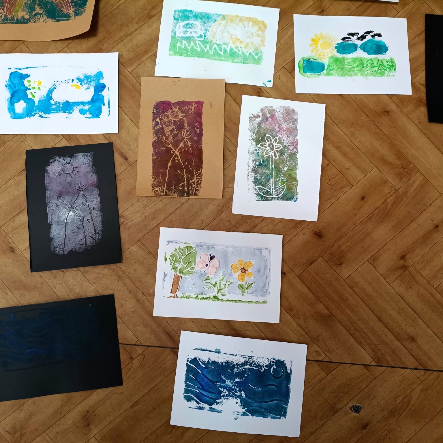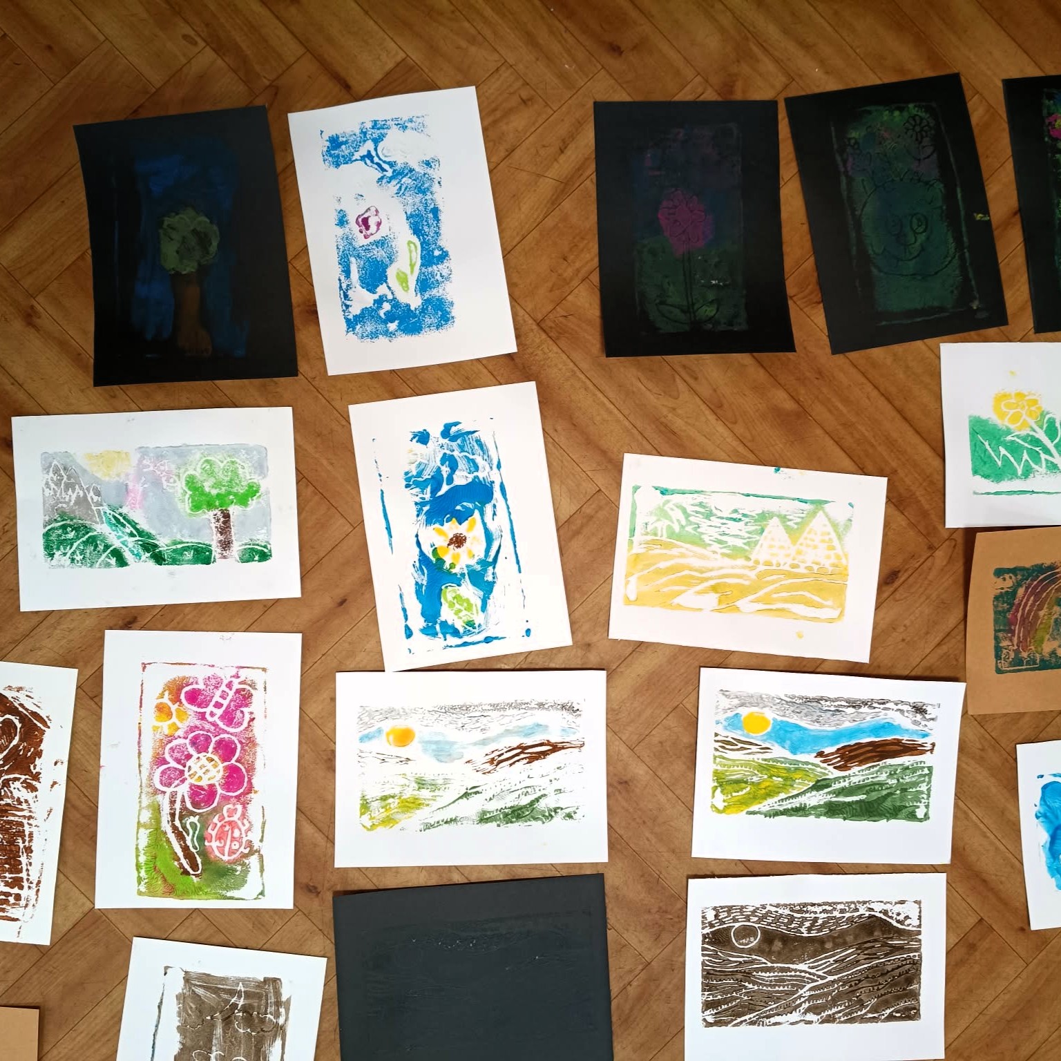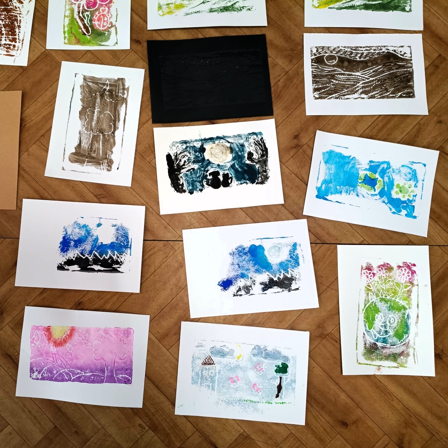 Tym razem uczestnicy wzięli udział w ćwiczeniu graficznym o tematyce przyrodniczej, nawiązującym do obchodzonego dzień wcześniej Dnia Ziemi. W pracy twórczej wykorzystano matryce ze styropianu, dzięki którym powstały ciekawe i oryginalne odbitki inspirowane naturą.