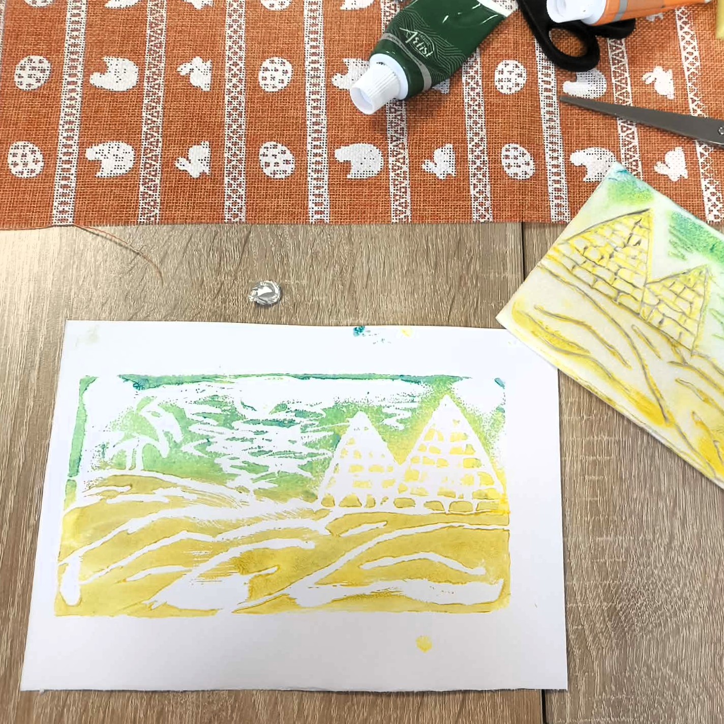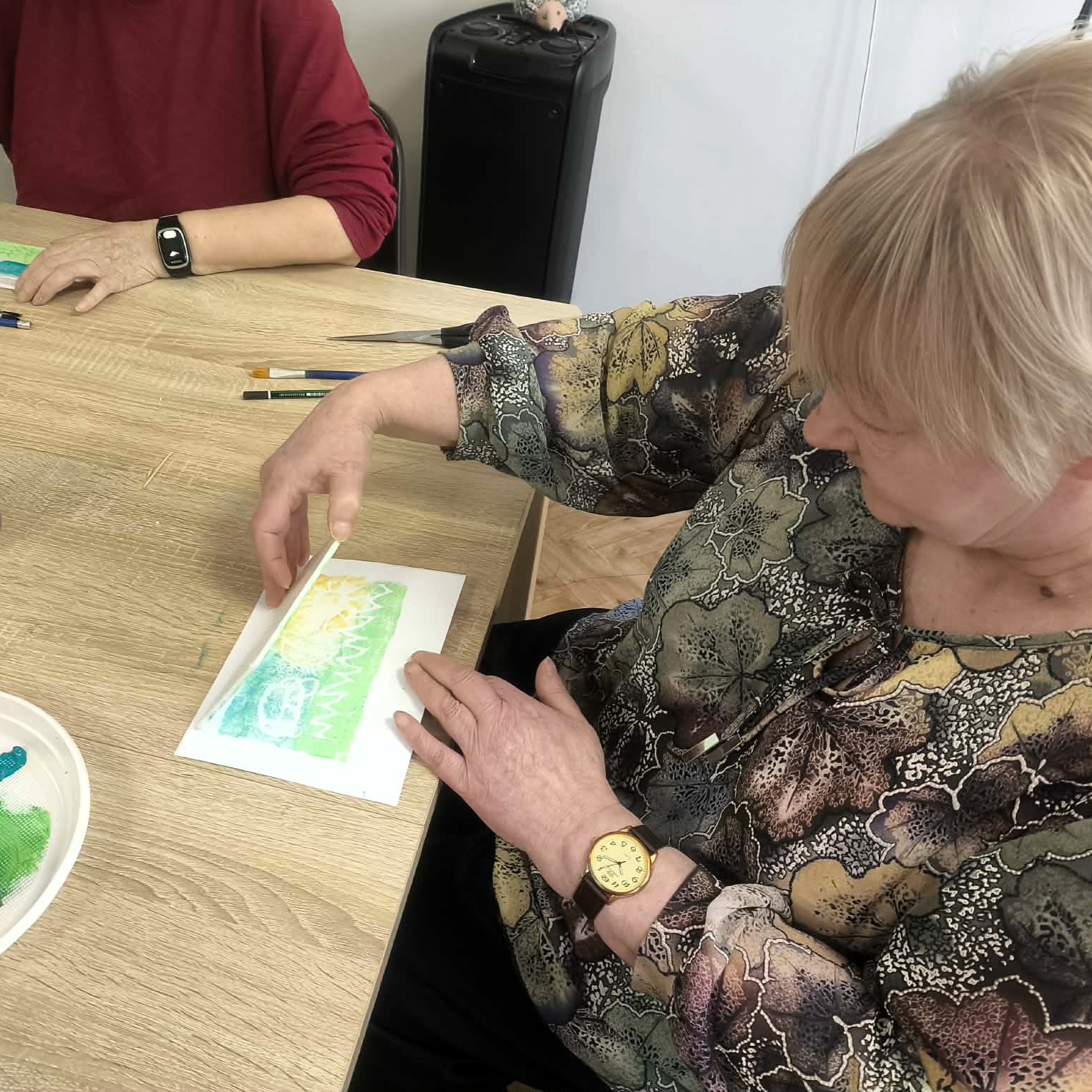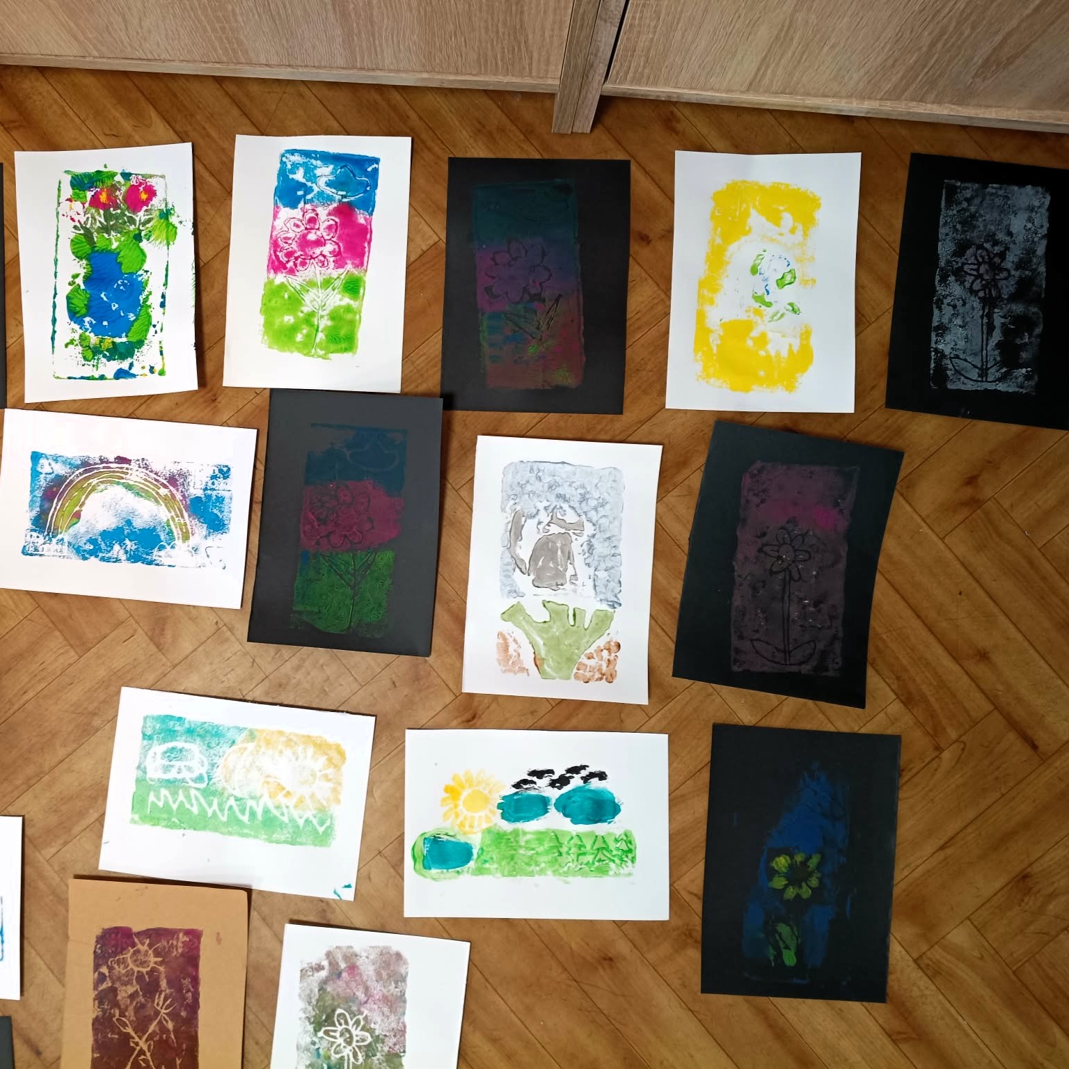 Tym razem uczestnicy wzięli udział w ćwiczeniu graficznym o tematyce przyrodniczej, nawiązującym do obchodzonego dzień wcześniej Dnia Ziemi. W pracy twórczej wykorzystano matryce ze styropianu, dzięki którym powstały ciekawe i oryginalne odbitki inspirowane naturą.