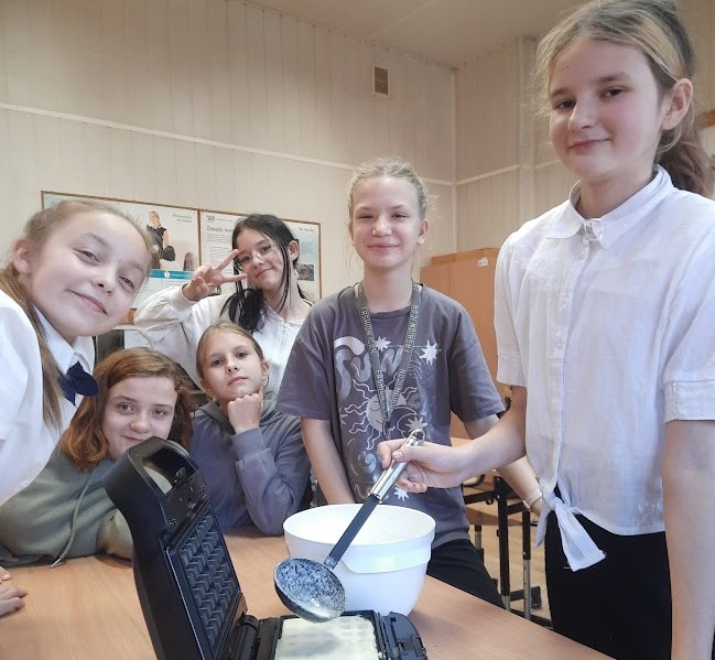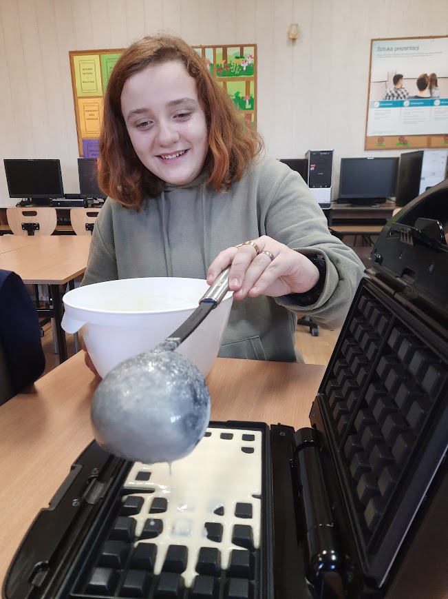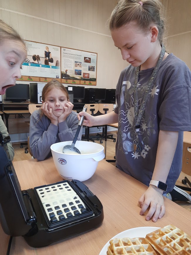 Uczniowie z grupy „Kreatywne zajęcia techniczne i kulinaria” z SP16 podczas zajęć w świetlicy Amaro Strychos przygotowali ciasto na gofry, a następnie smażyli na złoty kolor w gofrownicy. Gotowanie jako sposób na dobre samopoczucie. Już sam proces mieszania składników, obserwowania, jak ciasto nabiera odpowiedniej konsystencji, czy wreszcie wyjmowania z gofrownicy chrupiących, złocistych gofrów, sprawiał ogromną satysfakcję. Atmosfera była pełna rozmów, śmiechu i wymiany kulinarnych doświadczeń. Zajęcia i wszystkie materiały niezbędne do przeprowadzenia zajęć zostały sfinansowane ze środków dotacji Ministra Spraw Wewnętrznych i Administracji w ramach „Programu integracji społecznej i obywatelskiej Romów w Polsce na lata 2021 -2030”.