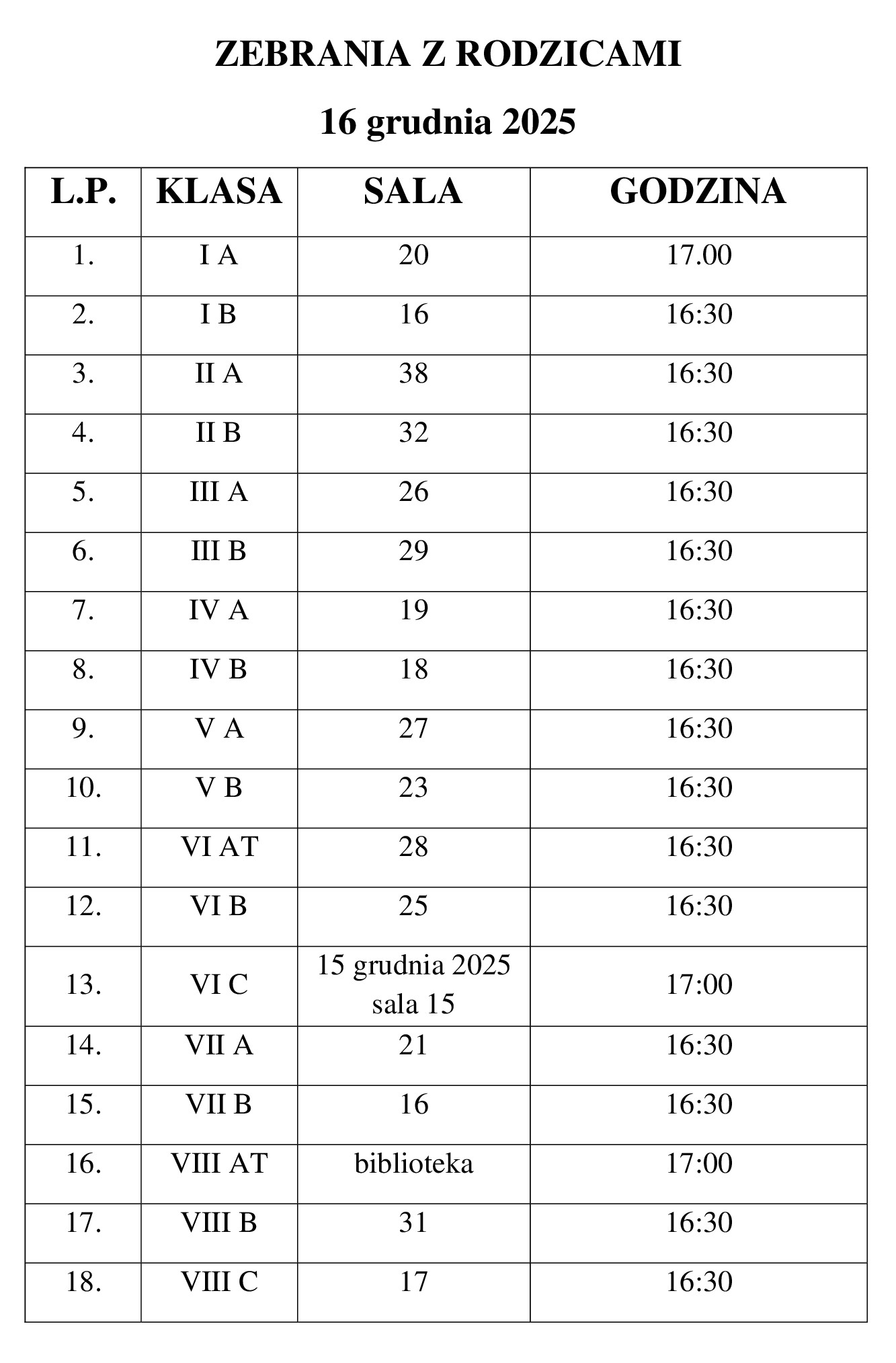 16 grudnia 2025 (wtorek) - Śródroczne zebranie informacyjne